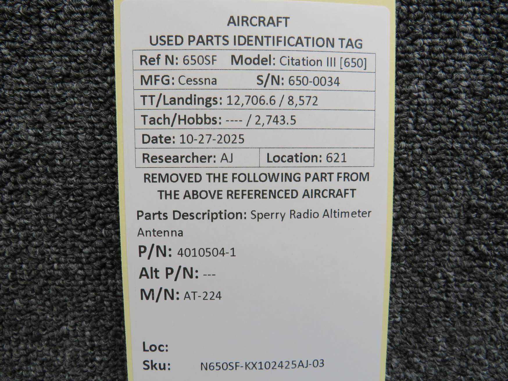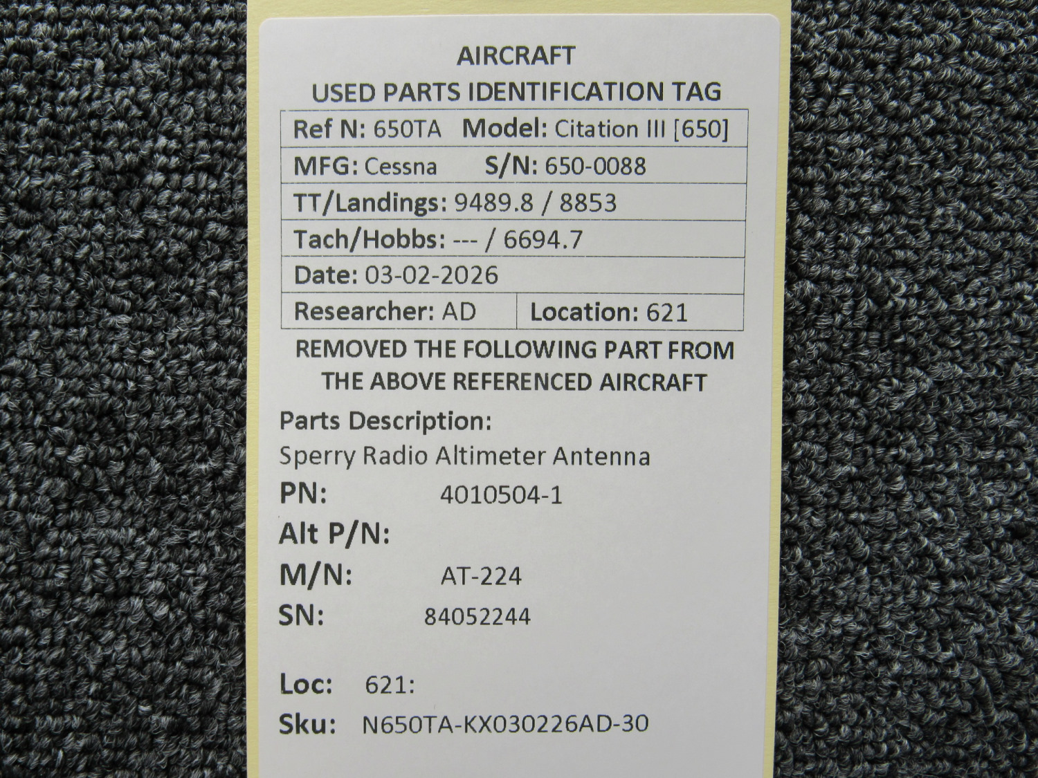 Every part is carefully inspected throughout our process and several times before it goes online. Most items are sold as-removed, just as they came off the aircraft. These parts are not functionally tested. What we do provide is clear photos, full traceability when available, pricing that reflects the as-removed condition, and a no-nonsense 90-day return window.