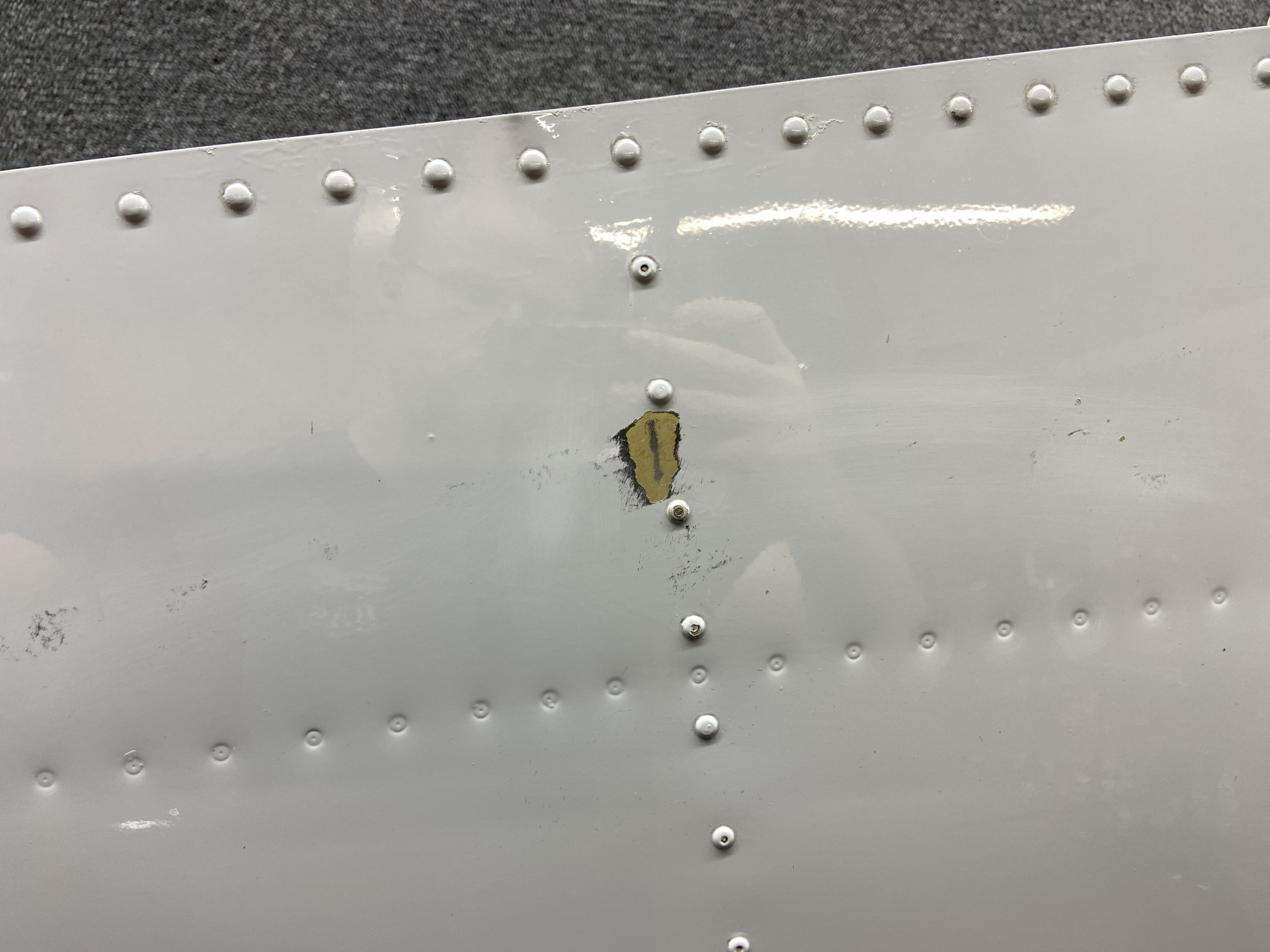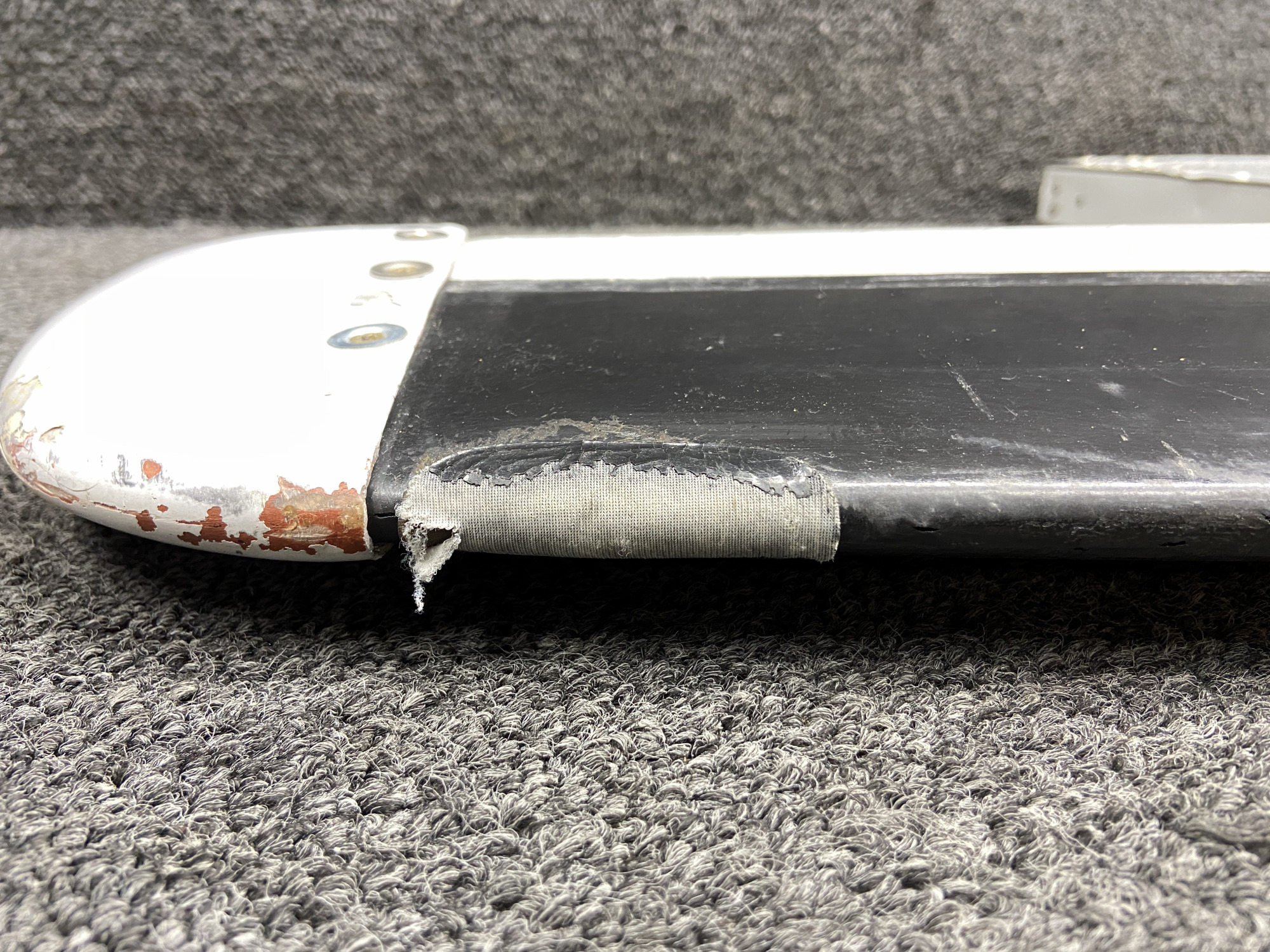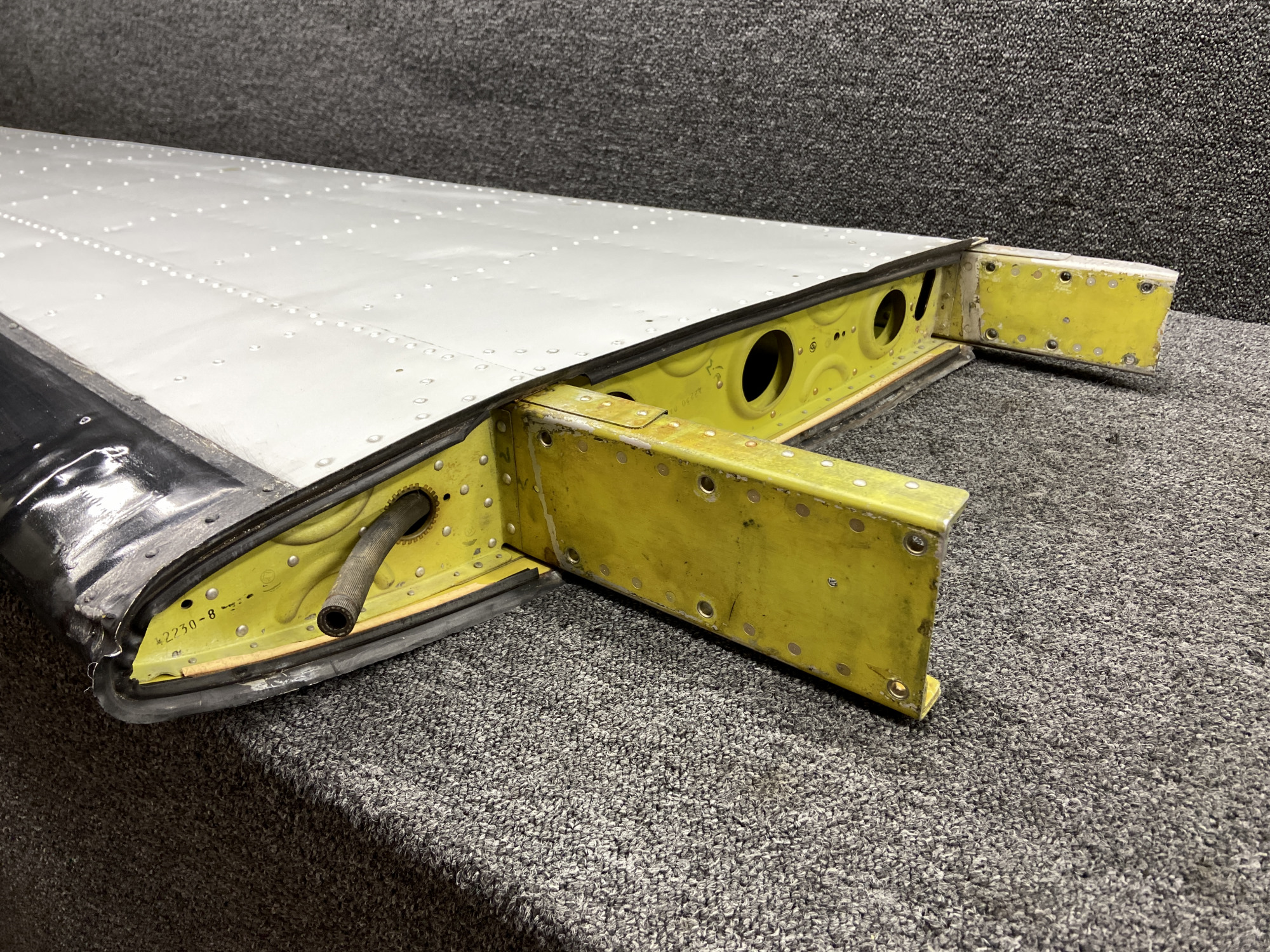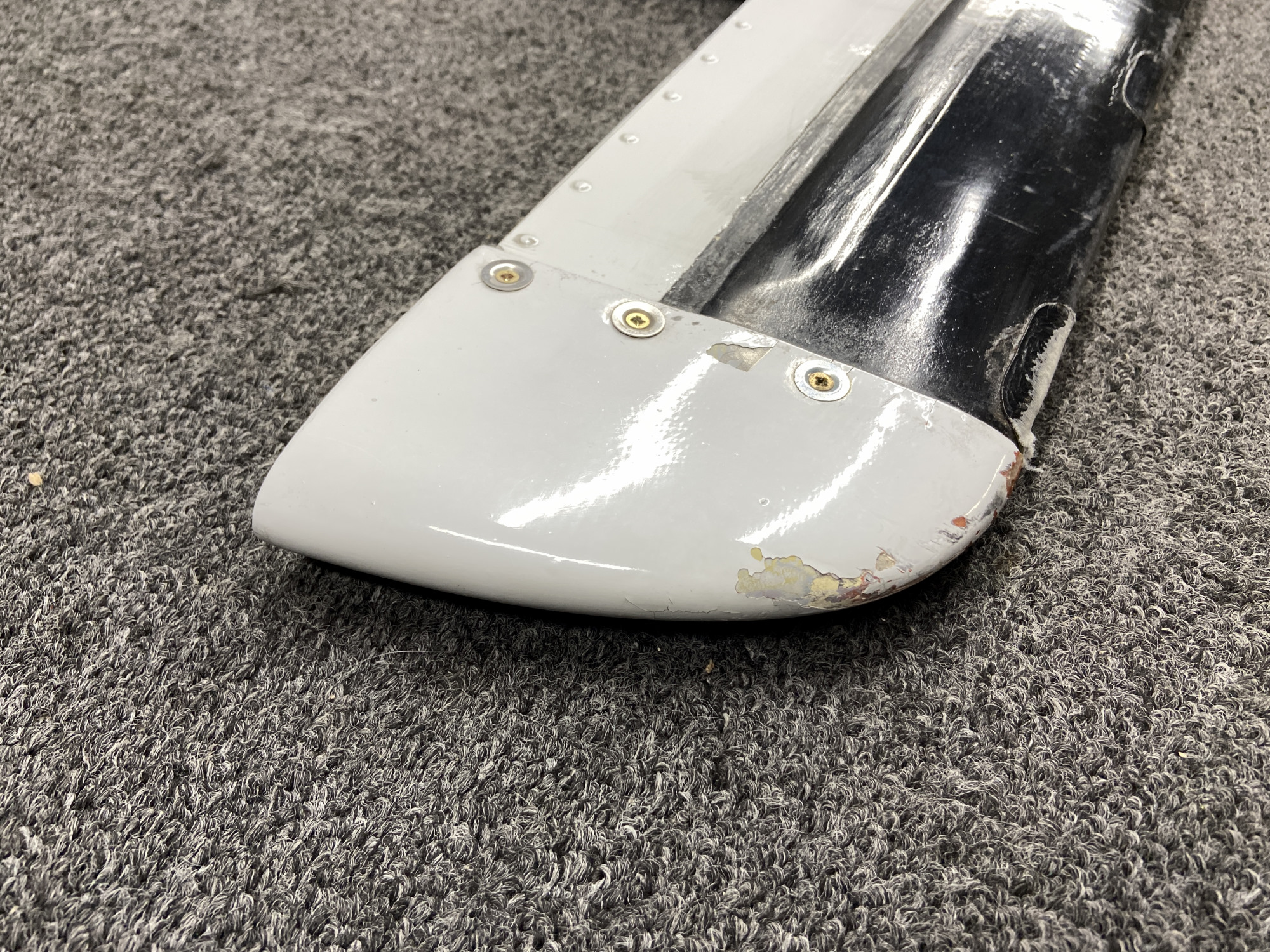 - Has minor dents and paint chips to the trailing edge skins and multiple tears and repairs to the de-ice boot