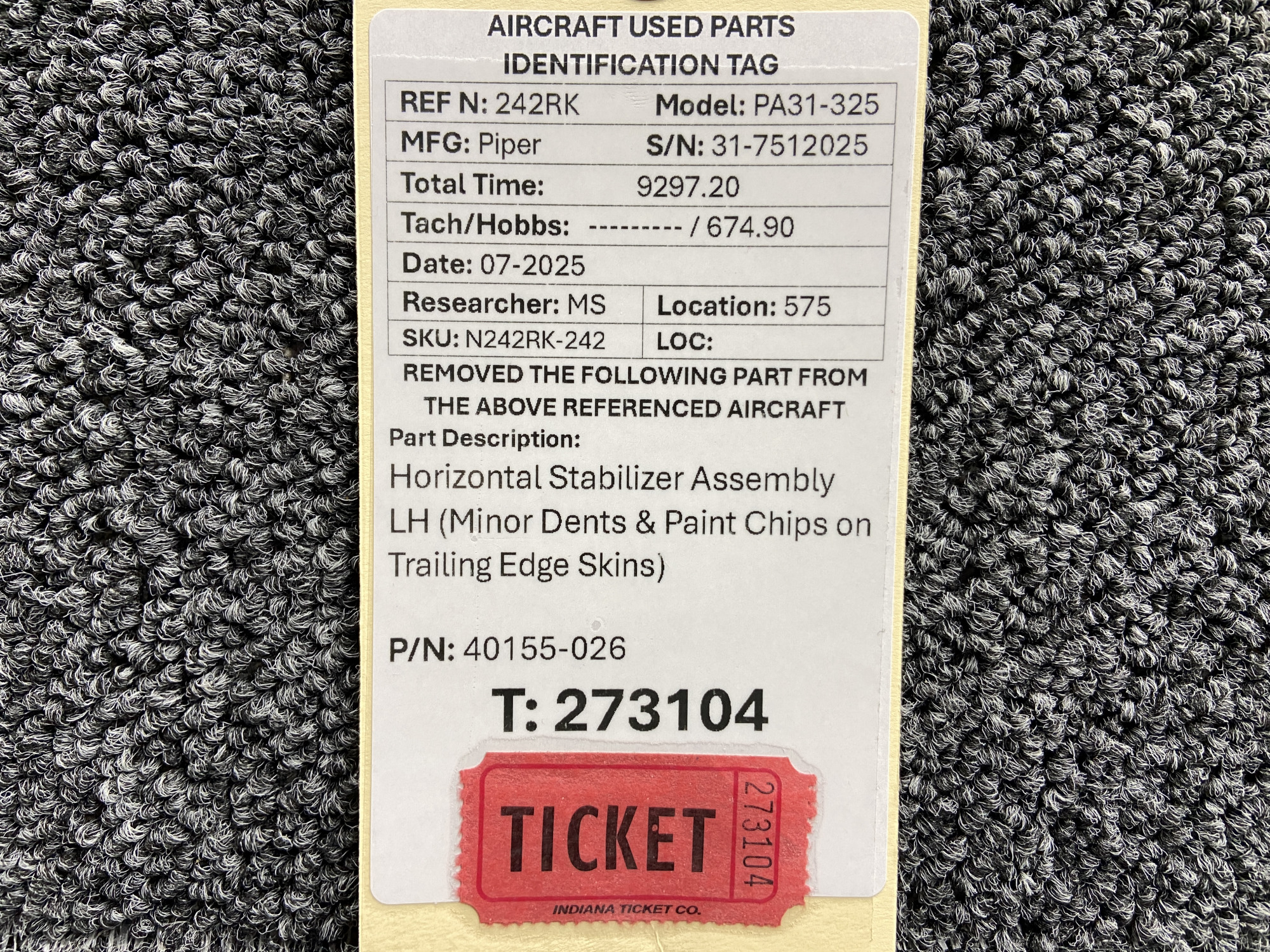 Unless specifically noted, most of our used airplane parts are sold in the condition they were removed, which means you should expect the usual signs of wear and tear.