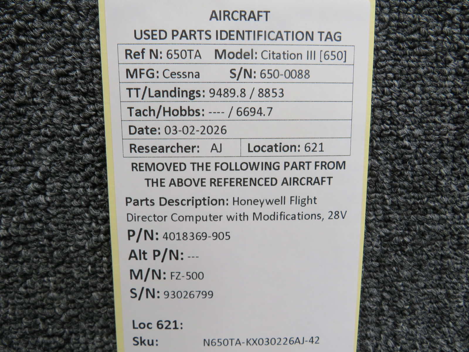 Every part is carefully inspected throughout our process and several times before it goes online. Most items are sold as-removed, just as they came off the aircraft. These parts are not functionally tested. What we do provide is clear photos, full traceability when available, pricing that reflects the as-removed condition, and a no-nonsense 90-day return window.