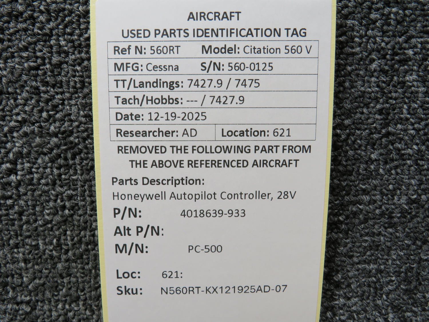 Unless specifically noted, most of our used airplane parts are sold in the condition they were removed, which means you should expect the usual signs of wear and tear.