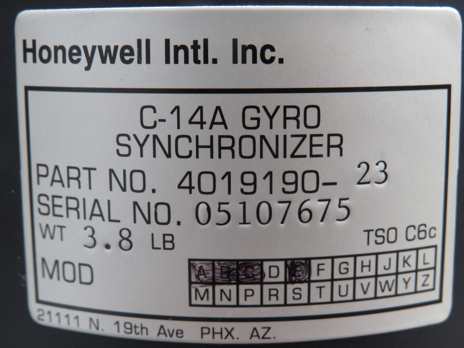 - Gyro Synchronizer - Part Number: 4019190-23, SN: 05107675, Mods: A-C & E