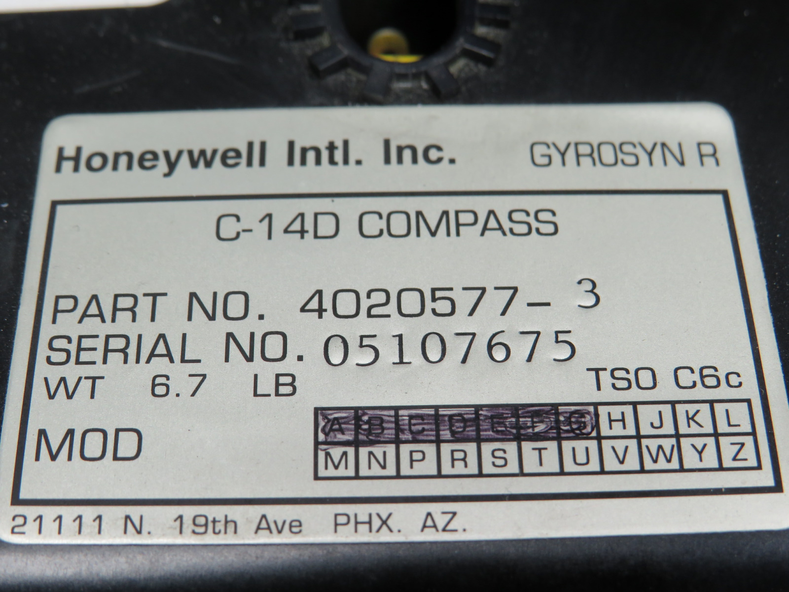- Gyrosyn R Compass - Part Number: 4020577-3, SN: 05107675, Mods: A-G