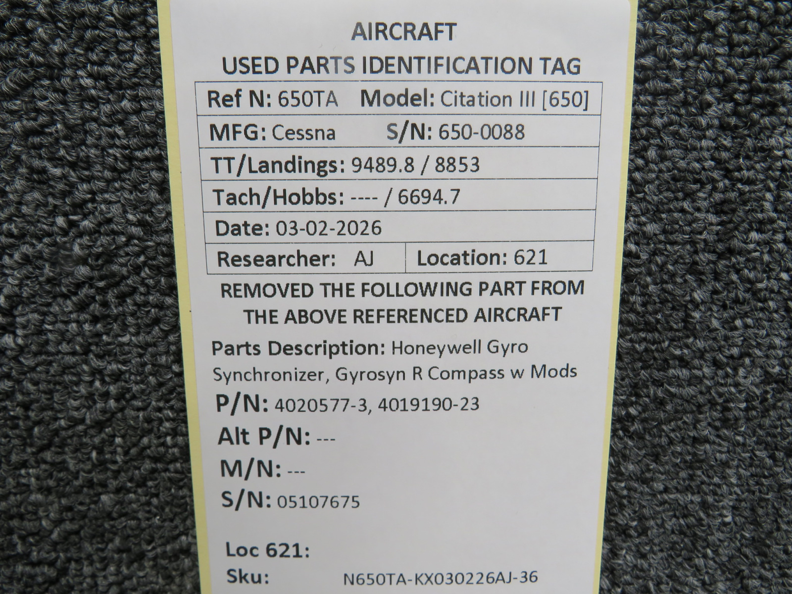 Every part is carefully inspected throughout our process and several times before it goes online. Most items are sold as-removed, just as they came off the aircraft. These parts are not functionally tested. What we do provide is clear photos, full traceability when available, pricing that reflects the as-removed condition, and a no-nonsense 90-day return window.