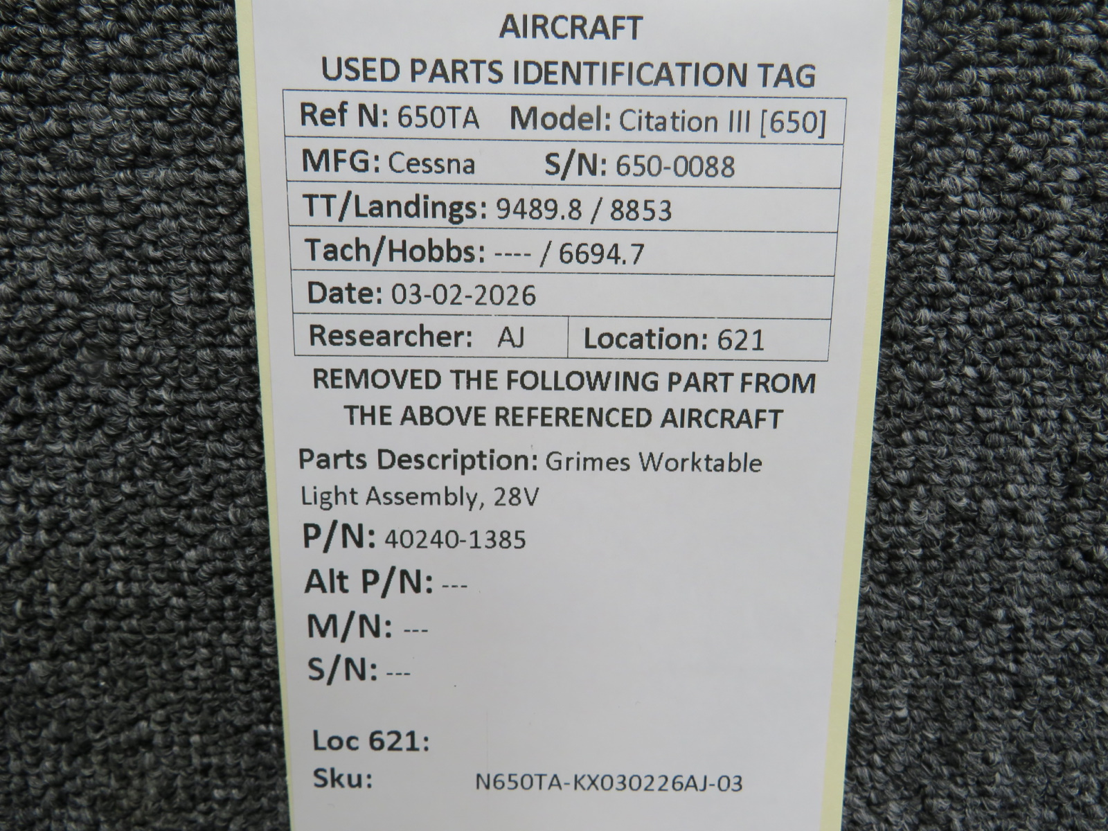 Every part is carefully inspected throughout our process and several times before it goes online. Most items are sold as-removed, just as they came off the aircraft. These parts are not functionally tested. What we do provide is clear photos, full traceability when available, pricing that reflects the as-removed condition, and a no-nonsense 90-day return window.