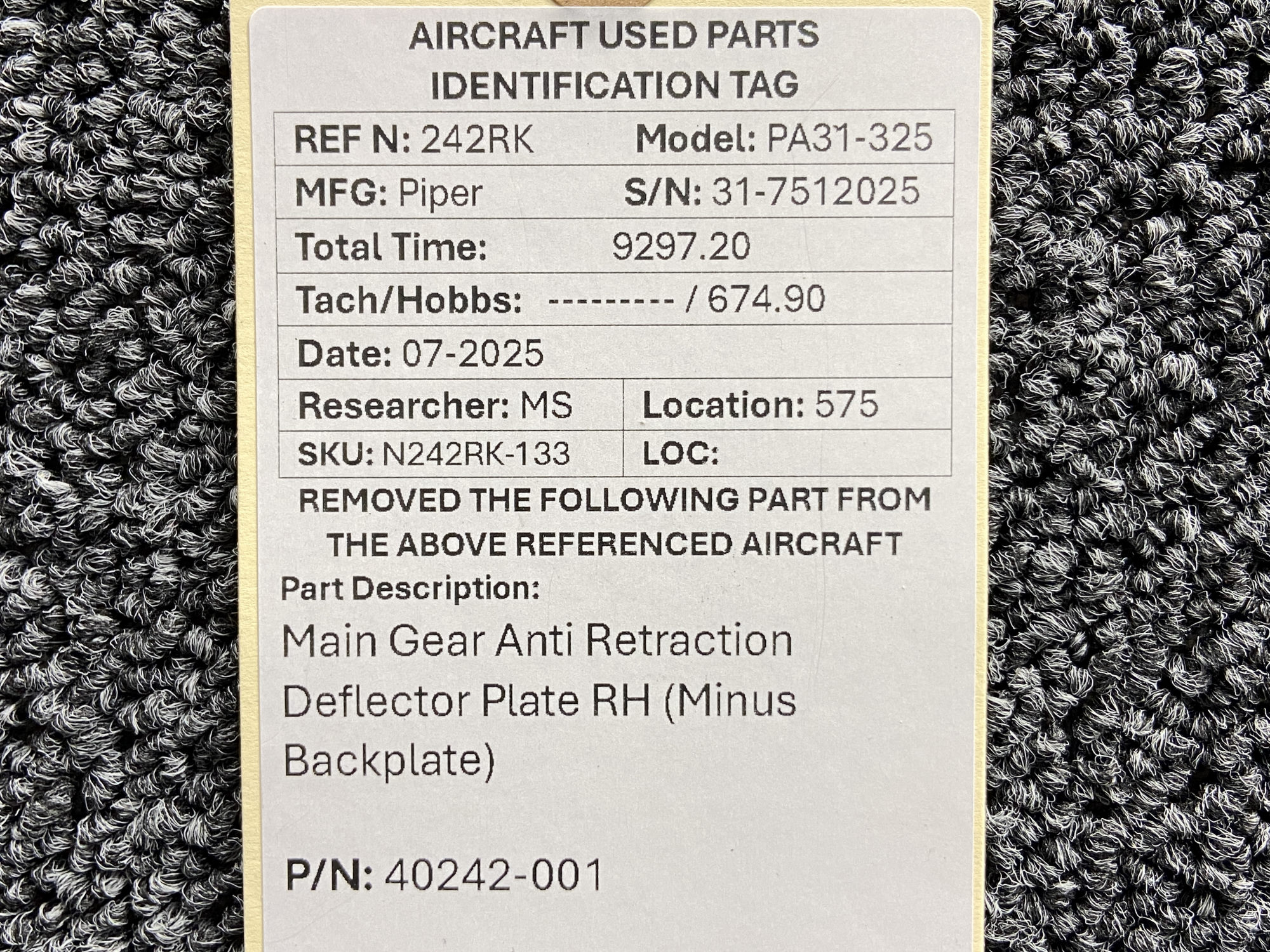 Unless specifically noted, most of our used airplane parts are sold in the condition they were removed, which means you should expect the usual signs of wear and tear.