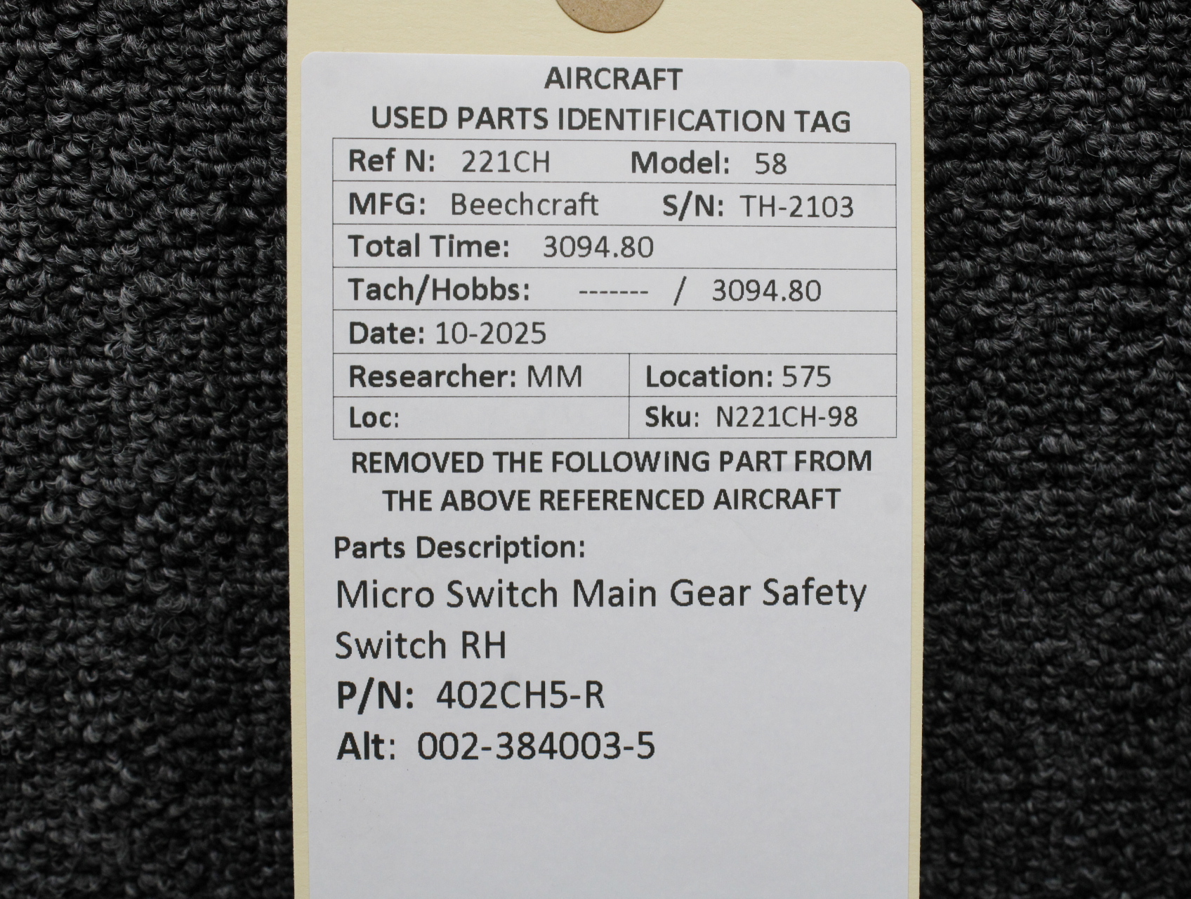 Unless specifically noted, most of our used airplane parts are sold in the condition they were removed, which means you should expect the usual signs of wear and tear.