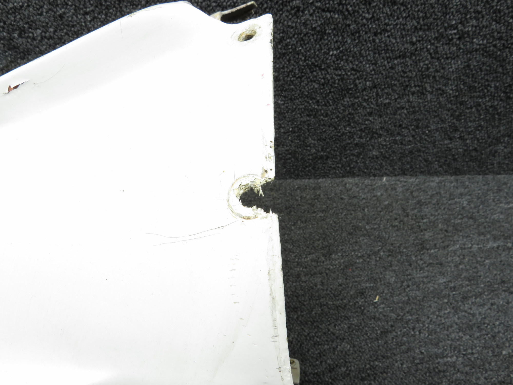 - Damage in fiberglass near a mounting hole