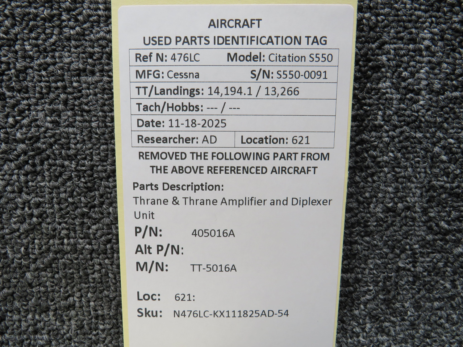 Unless specifically noted, most of our used airplane parts are sold in the condition they were removed, which means you should expect the usual signs of wear and tear.