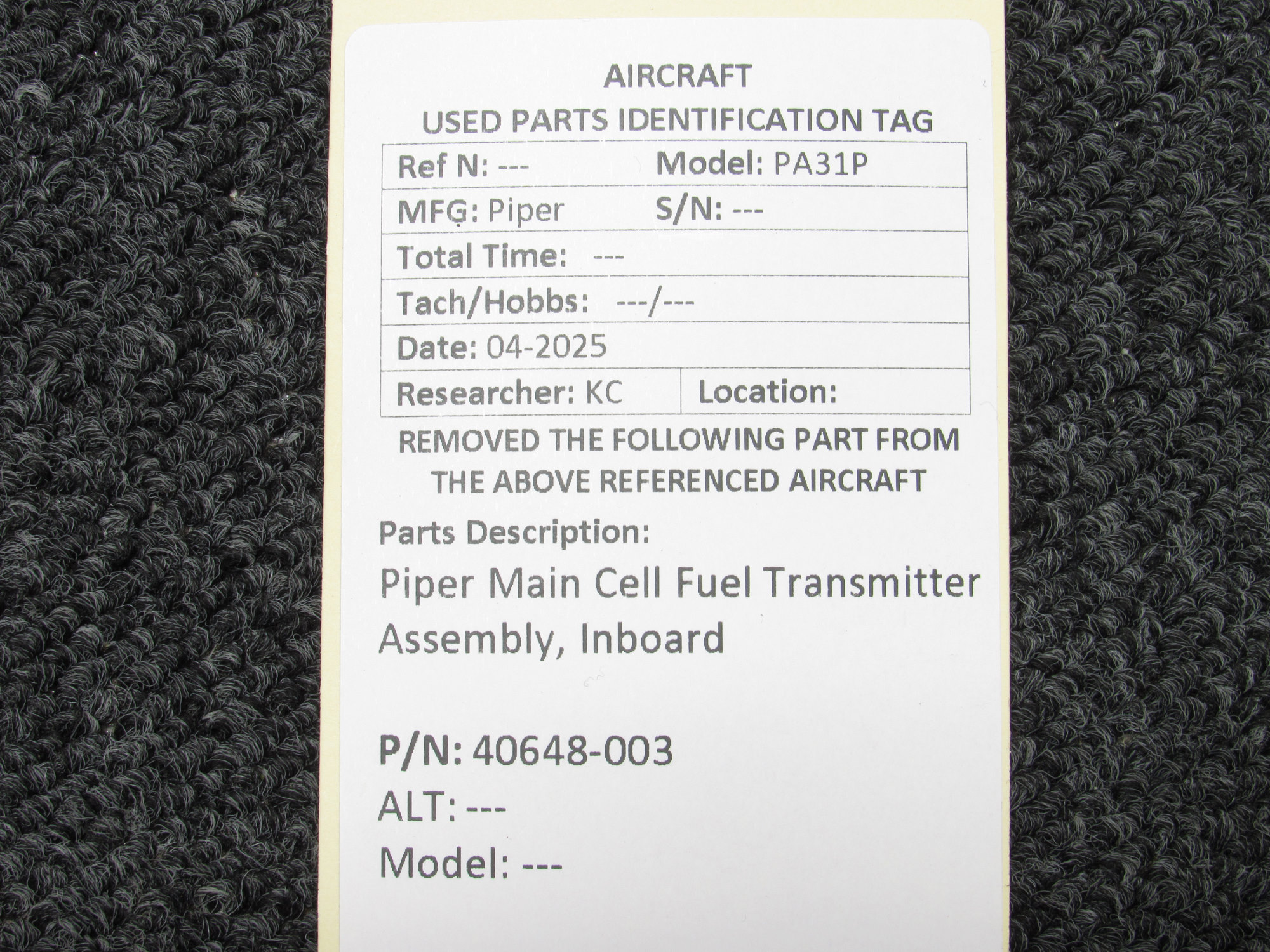 Unless specifically noted, most of our used airplane parts are sold in the condition they were removed, which means you should expect the usual signs of wear and tear.