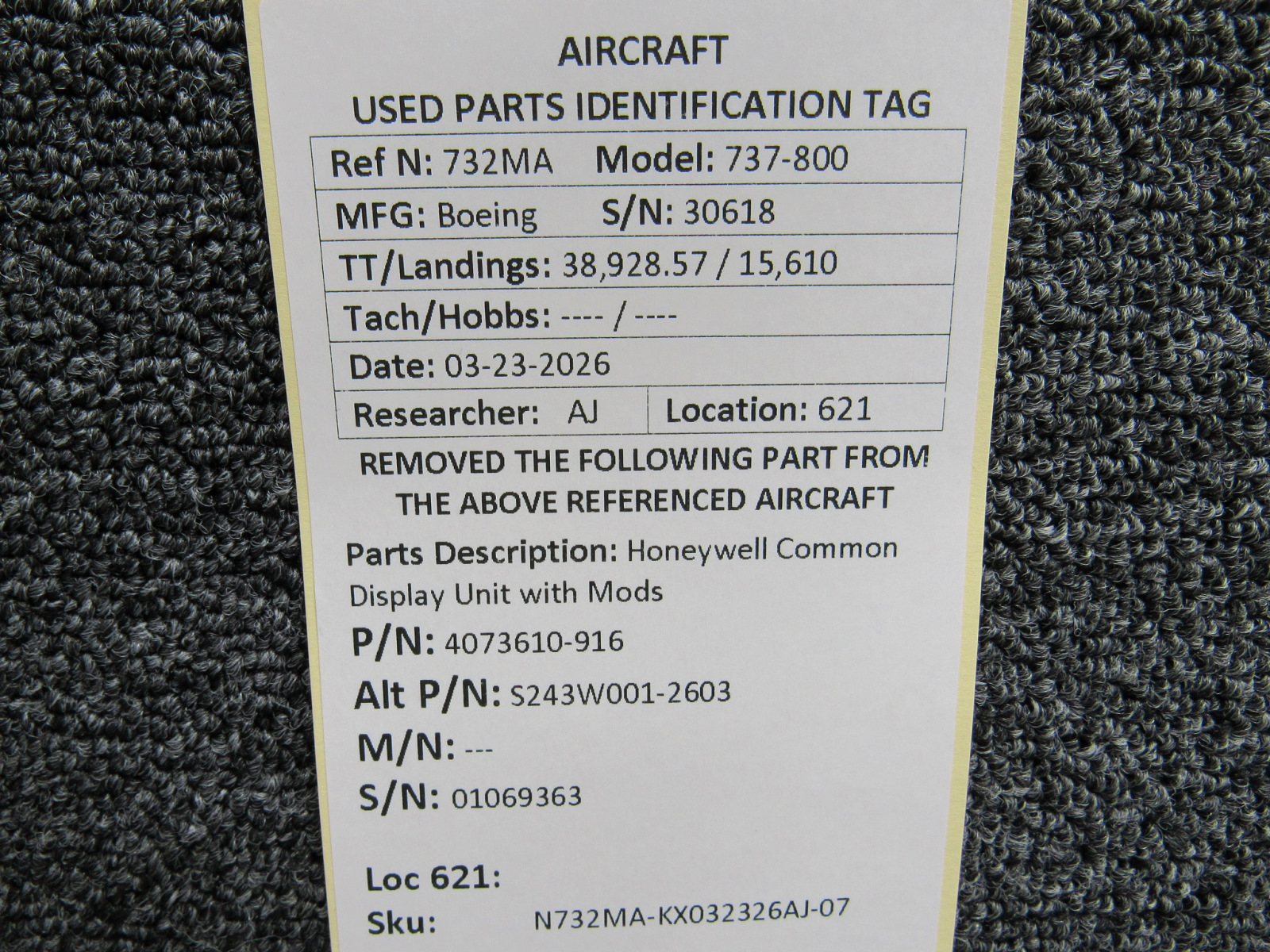 Every part is carefully inspected throughout our process and several times before it goes online. Most items are sold as-removed, just as they came off the aircraft. These parts are not functionally tested. What we do provide is clear photos, full traceability when available, pricing that reflects the as-removed condition, and a no-nonsense 90-day return window.