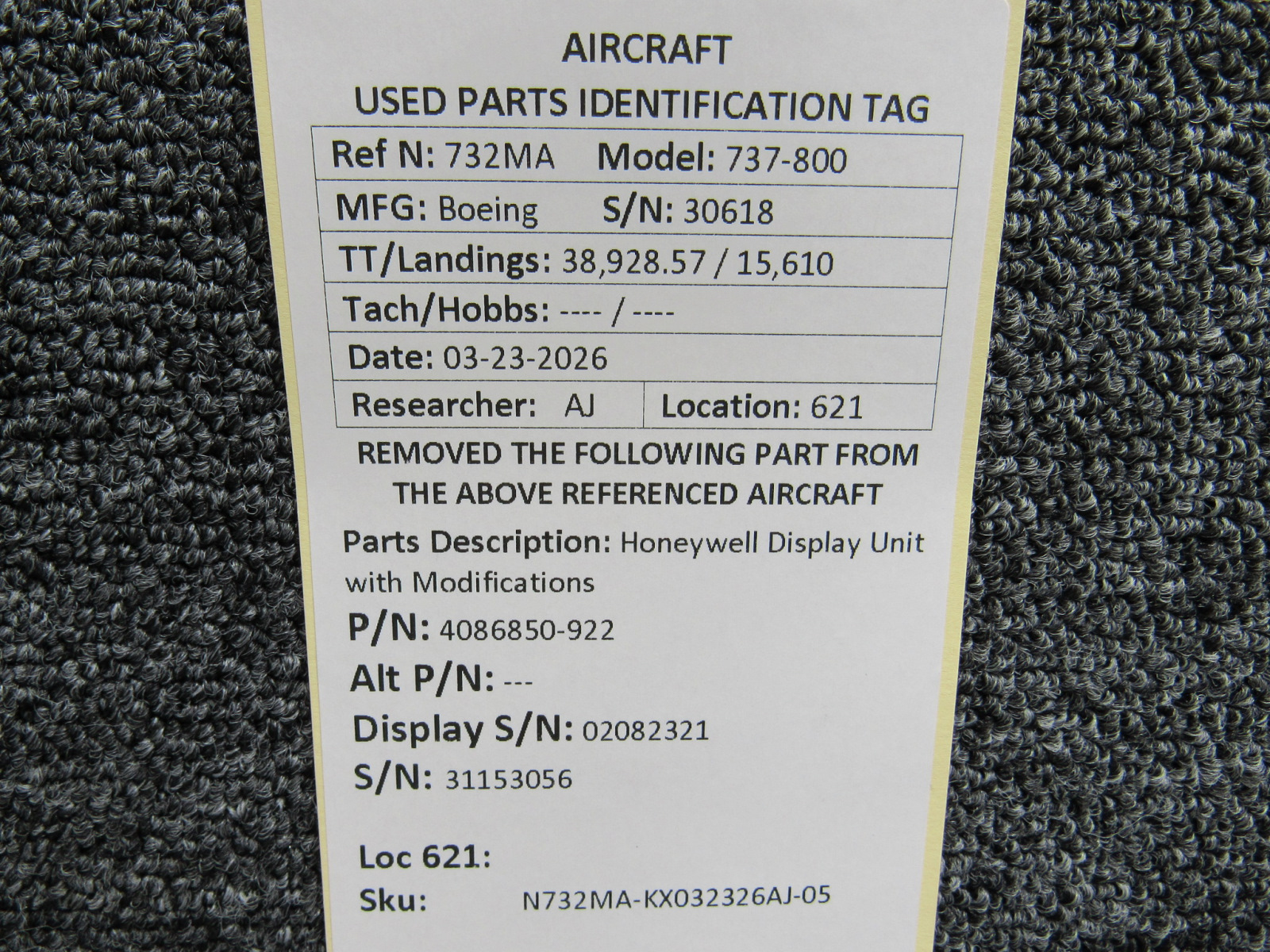 Every part is carefully inspected throughout our process and several times before it goes online. Most items are sold as-removed, just as they came off the aircraft. These parts are not functionally tested. What we do provide is clear photos, full traceability when available, pricing that reflects the as-removed condition, and a no-nonsense 90-day return window.
