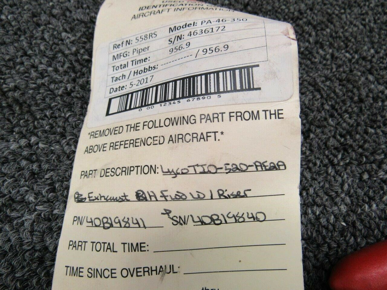 40B19841 / 40B19840 Piper PA46-350 Lycoming TIO-520-AE2A Exhaust Stack Riser Fwd