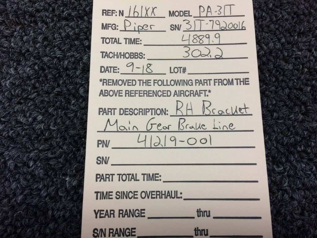 41219-001 Piper PA31-T RH Bracket Main Gear Brake Line