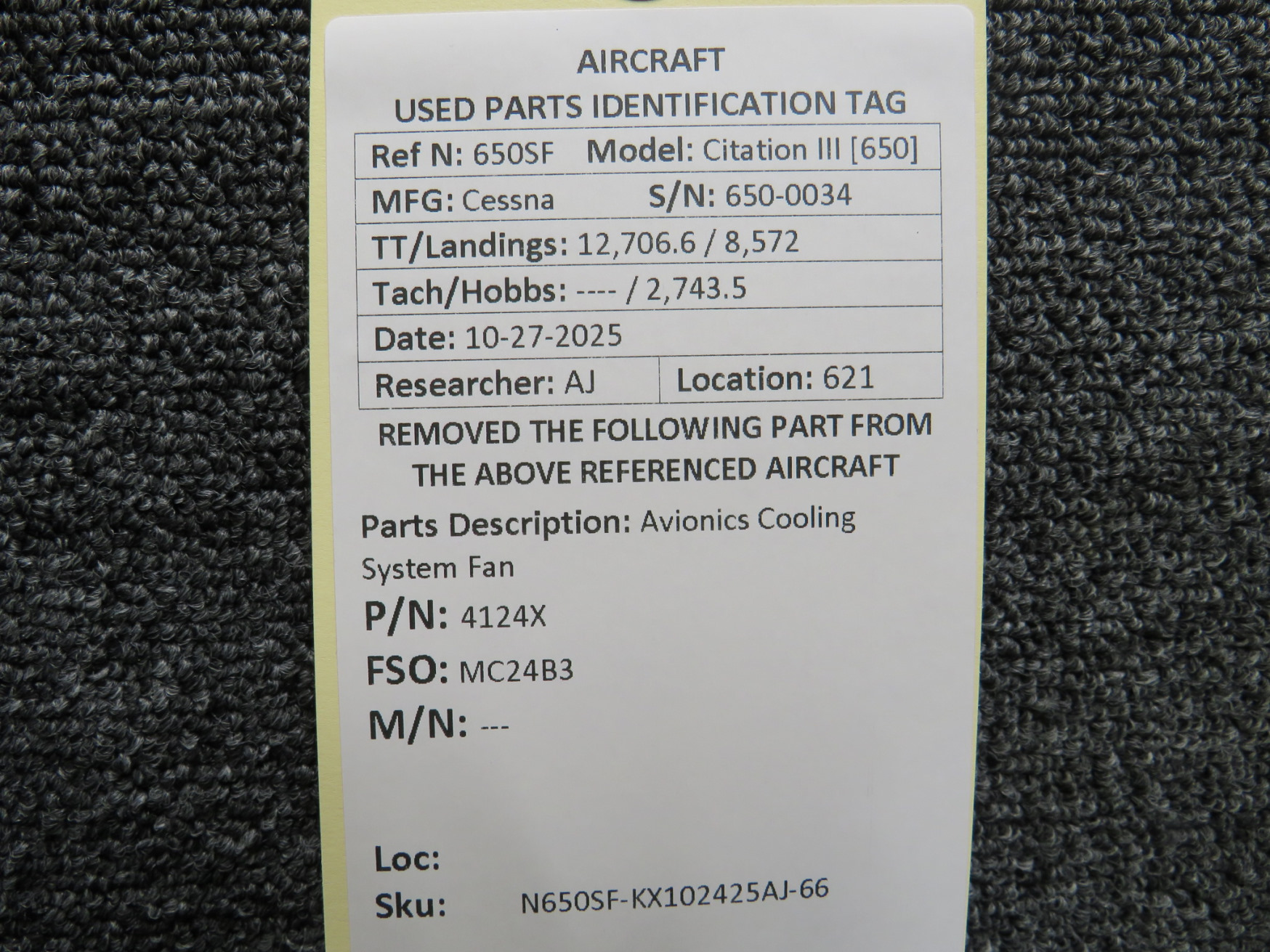 Unless specifically noted, most of our used airplane parts are sold in the condition they were removed, which means you should expect the usual signs of wear and tear.