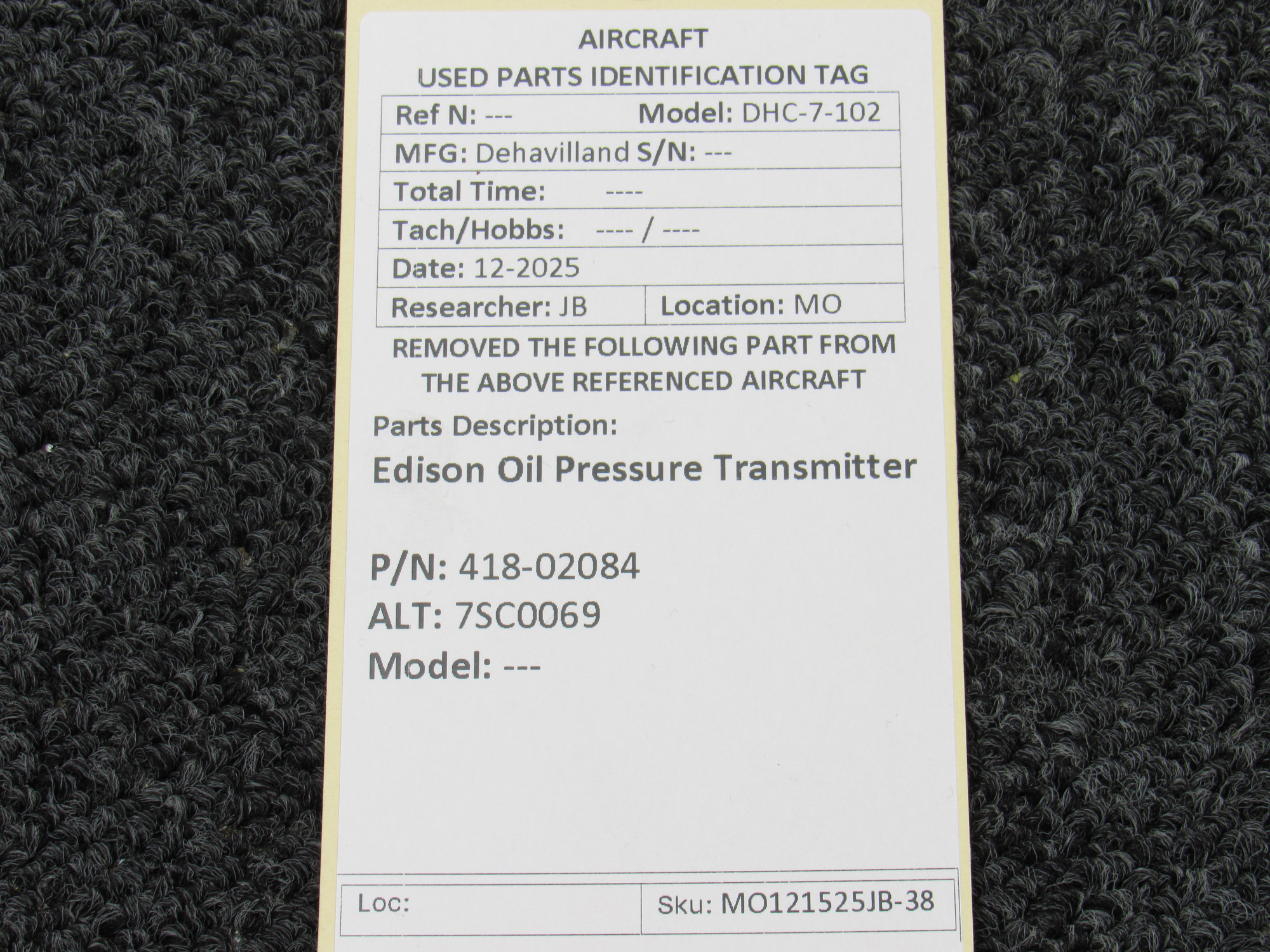 Every part is carefully inspected throughout our process and several times before it goes online. Most items are sold as-removed, just as they came off the aircraft. These parts are not functionally tested. What we do provide is clear photos, full traceability when available, pricing that reflects the as-removed condition, and a no-nonsense 90-day return window.