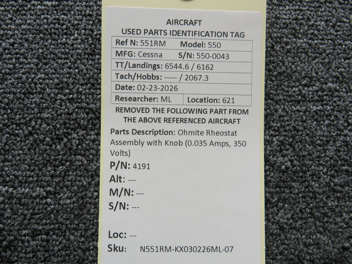 Every part is carefully inspected throughout our process and several times before it goes online. Most items are sold as-removed, just as they came off the aircraft. These parts are not functionally tested. What we do provide is clear photos, full traceability when available, pricing that reflects the as-removed condition, and a no-nonsense 90-day return window.