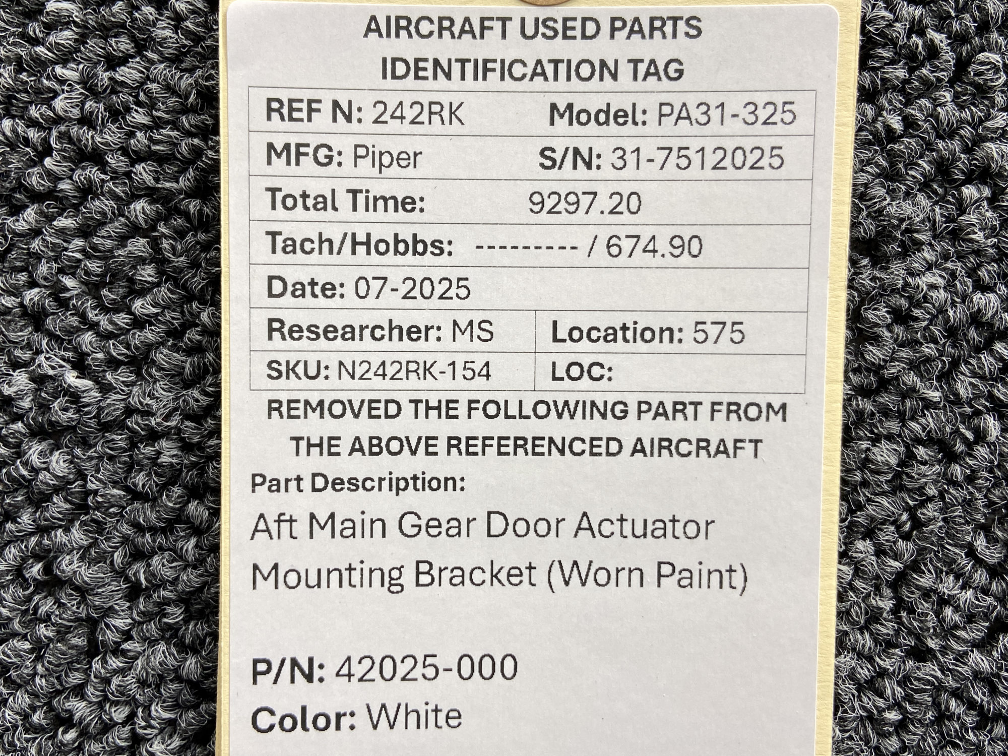Unless specifically noted, most of our used airplane parts are sold in the condition they were removed, which means you should expect the usual signs of wear and tear.