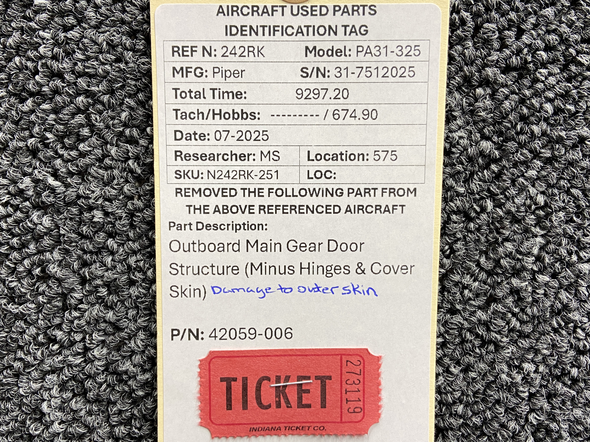 Unless specifically noted, most of our used airplane parts are sold in the condition they were removed, which means you should expect the usual signs of wear and tear.