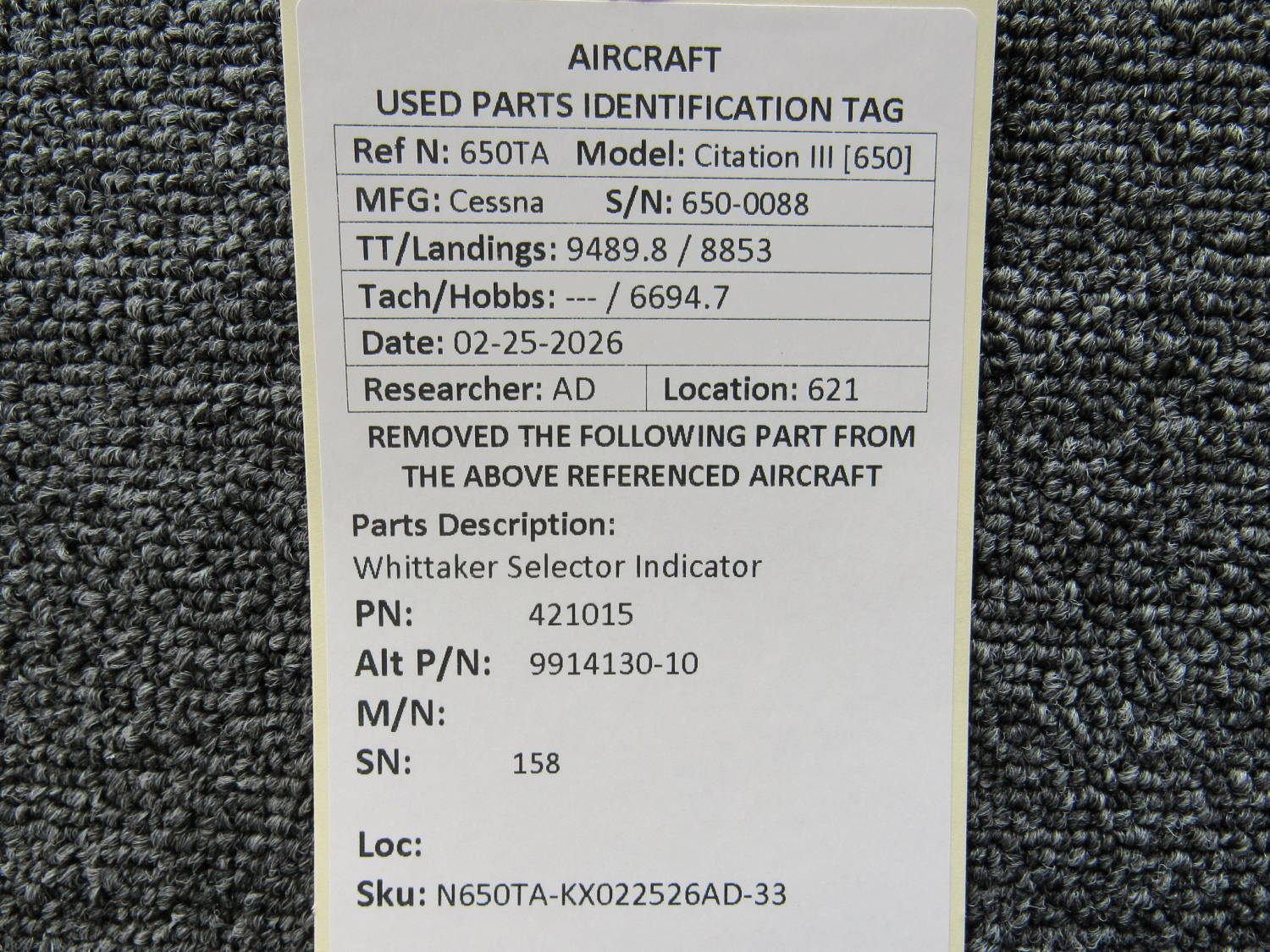 Unless specifically noted, most of our used airplane parts are sold in the condition they were removed, which means you should expect the usual signs of wear and tear.