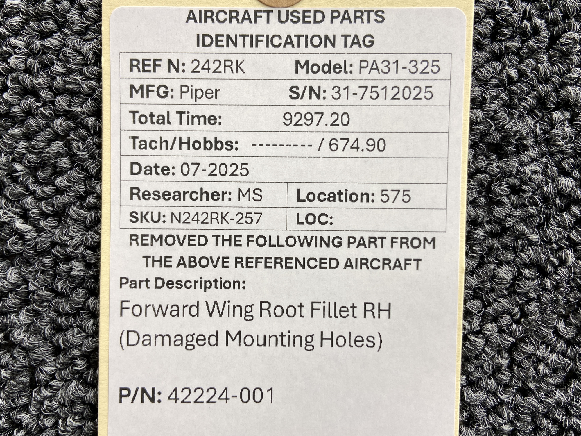 Unless specifically noted, most of our used airplane parts are sold in the condition they were removed, which means you should expect the usual signs of wear and tear.