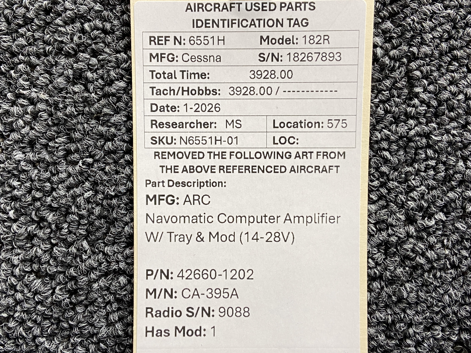 Unless specifically noted, most of our used airplane parts are sold in the condition they were removed, which means you should expect the usual signs of wear and tear.