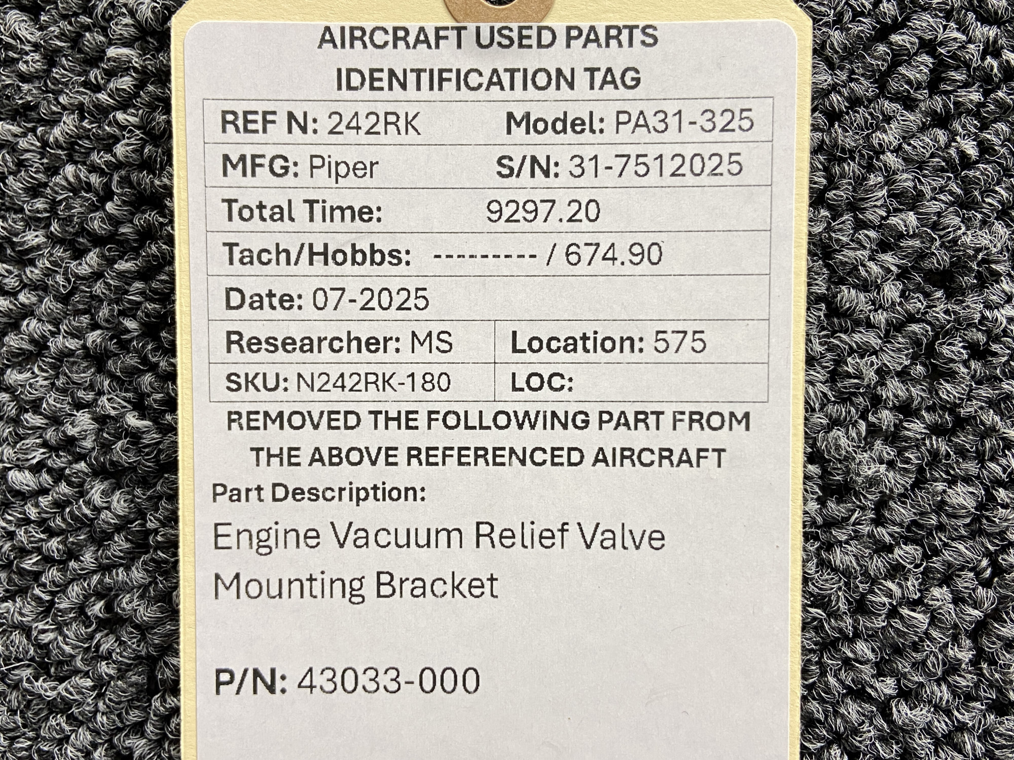 Unless specifically noted, most of our used airplane parts are sold in the condition they were removed, which means you should expect the usual signs of wear and tear.