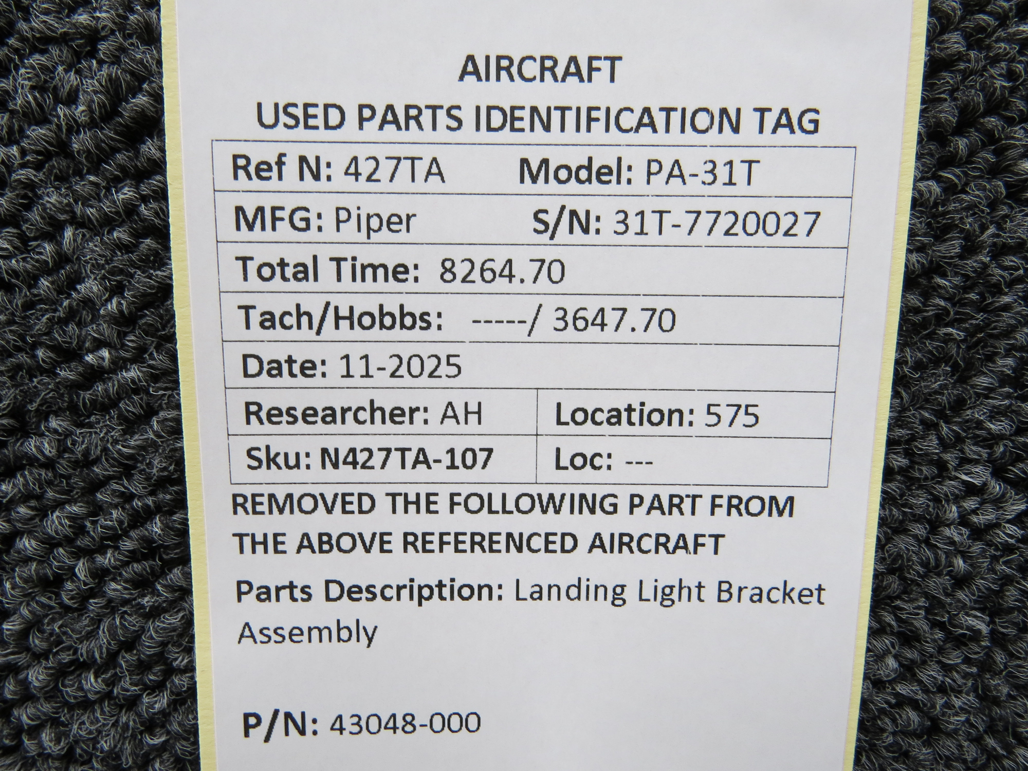 Unless specifically noted, most of our used airplane parts are sold in the condition they were removed, which means you should expect the usual signs of wear and tear.