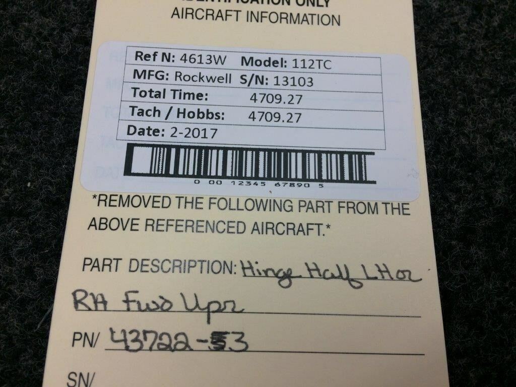 43722-3 Rockwell 112TC / 114 Hinge Half Fwd LH or RH