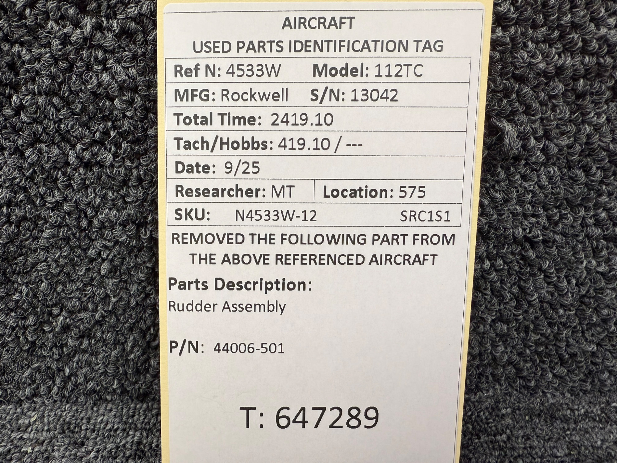 Unless specifically noted, most of our used airplane parts are sold in the condition they were removed, which means you should expect the usual signs of wear and tear.