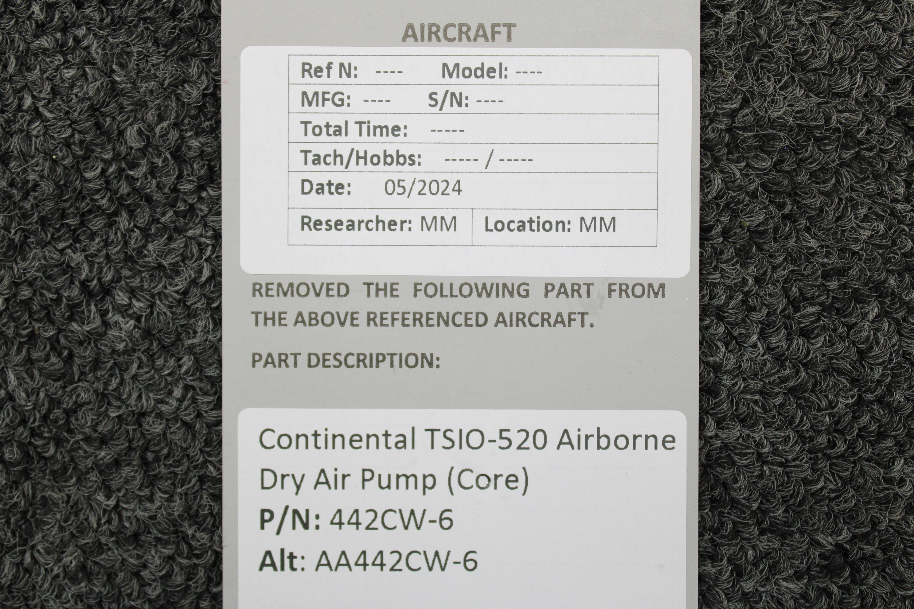 - Removed from Continental TSIO-520