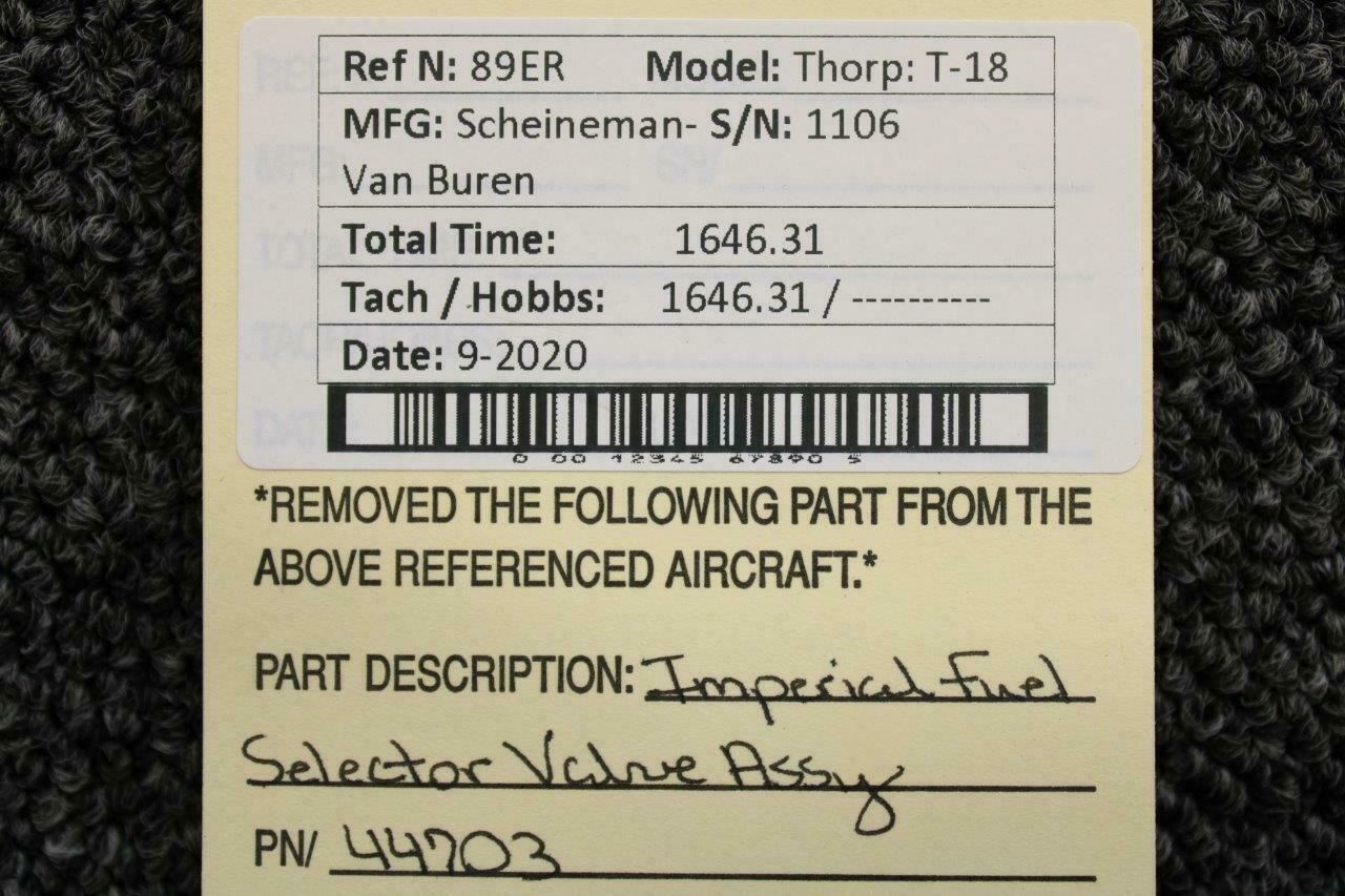 44703 Thorp T-18 Imperial Fuel Selector Valve Assy