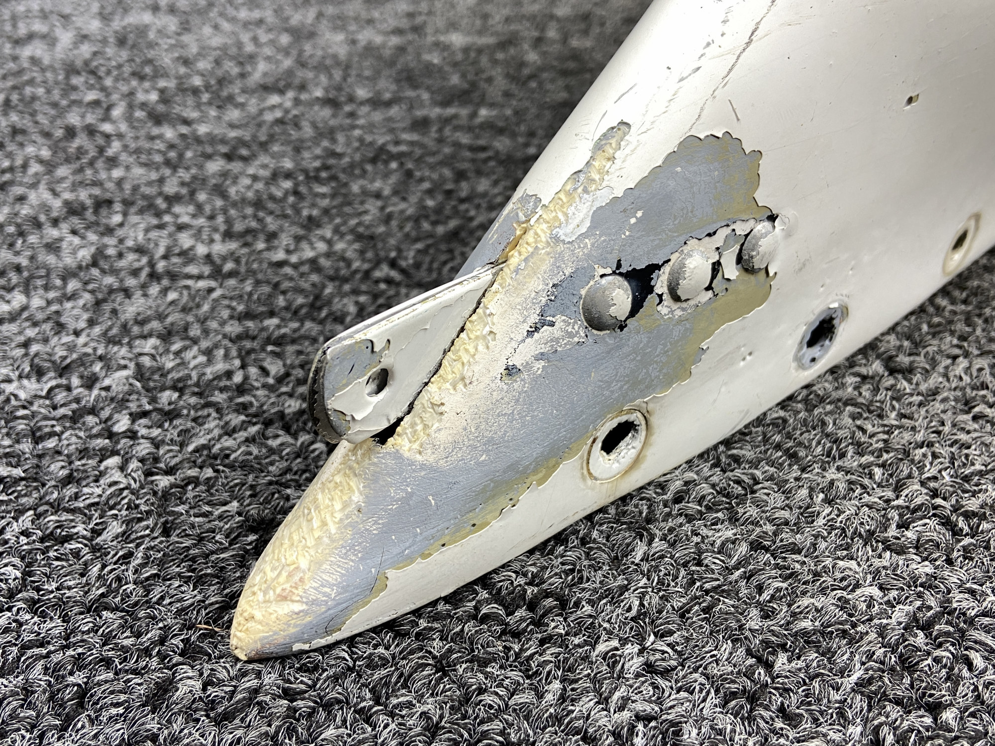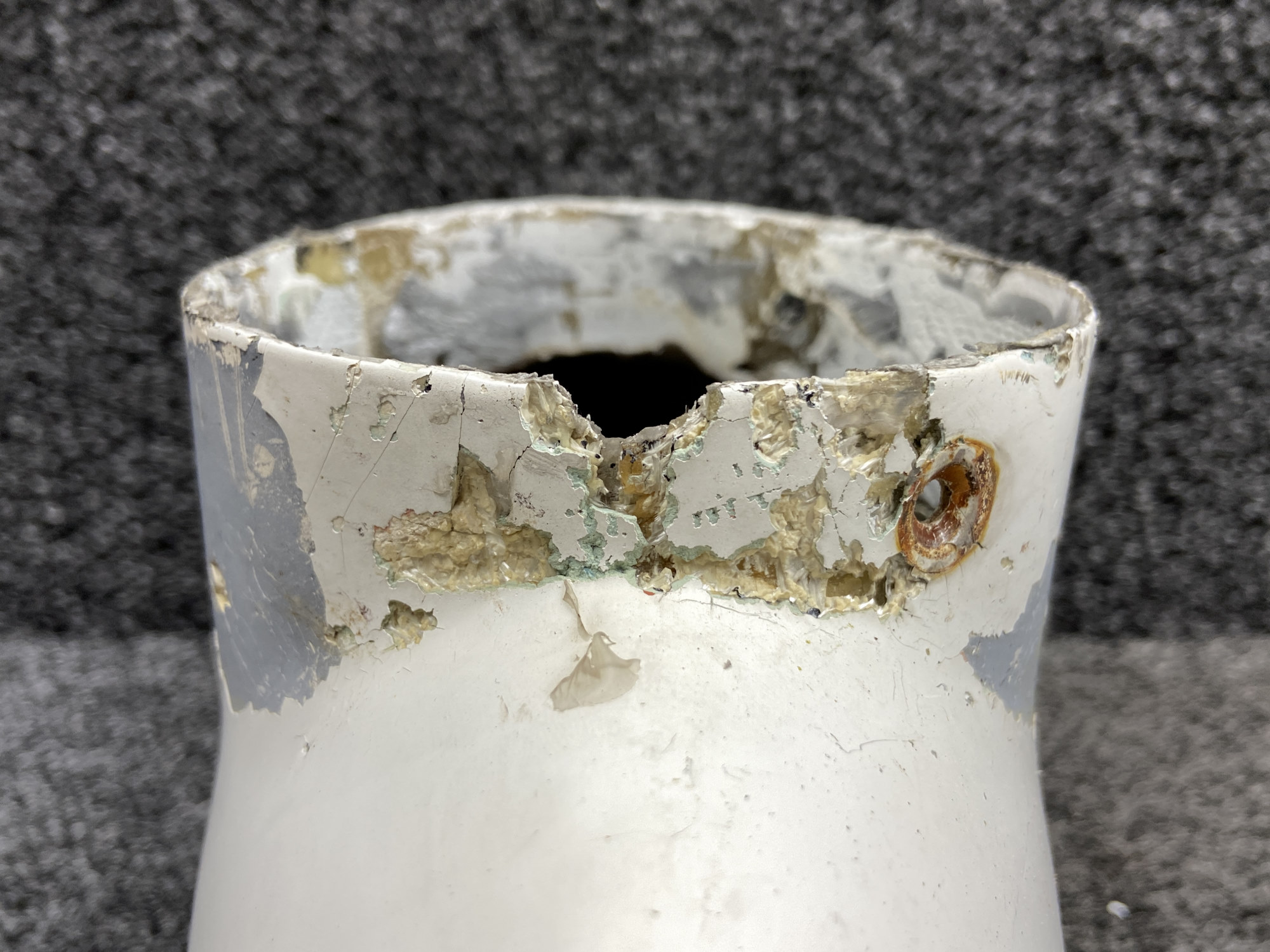 - There is damage to the fiberglass where front of tip and where beacon seats