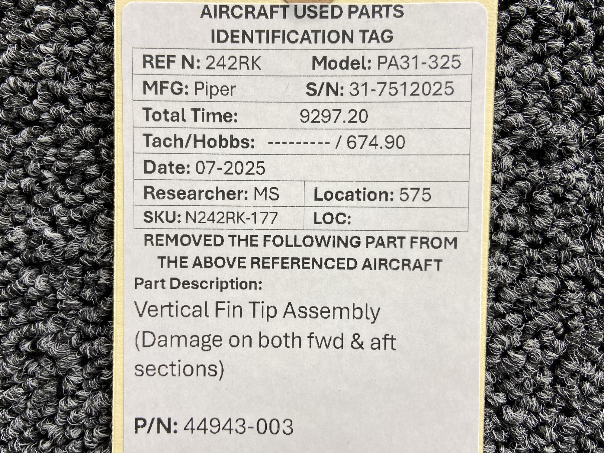 Unless specifically noted, most of our used airplane parts are sold in the condition they were removed, which means you should expect the usual signs of wear and tear.
