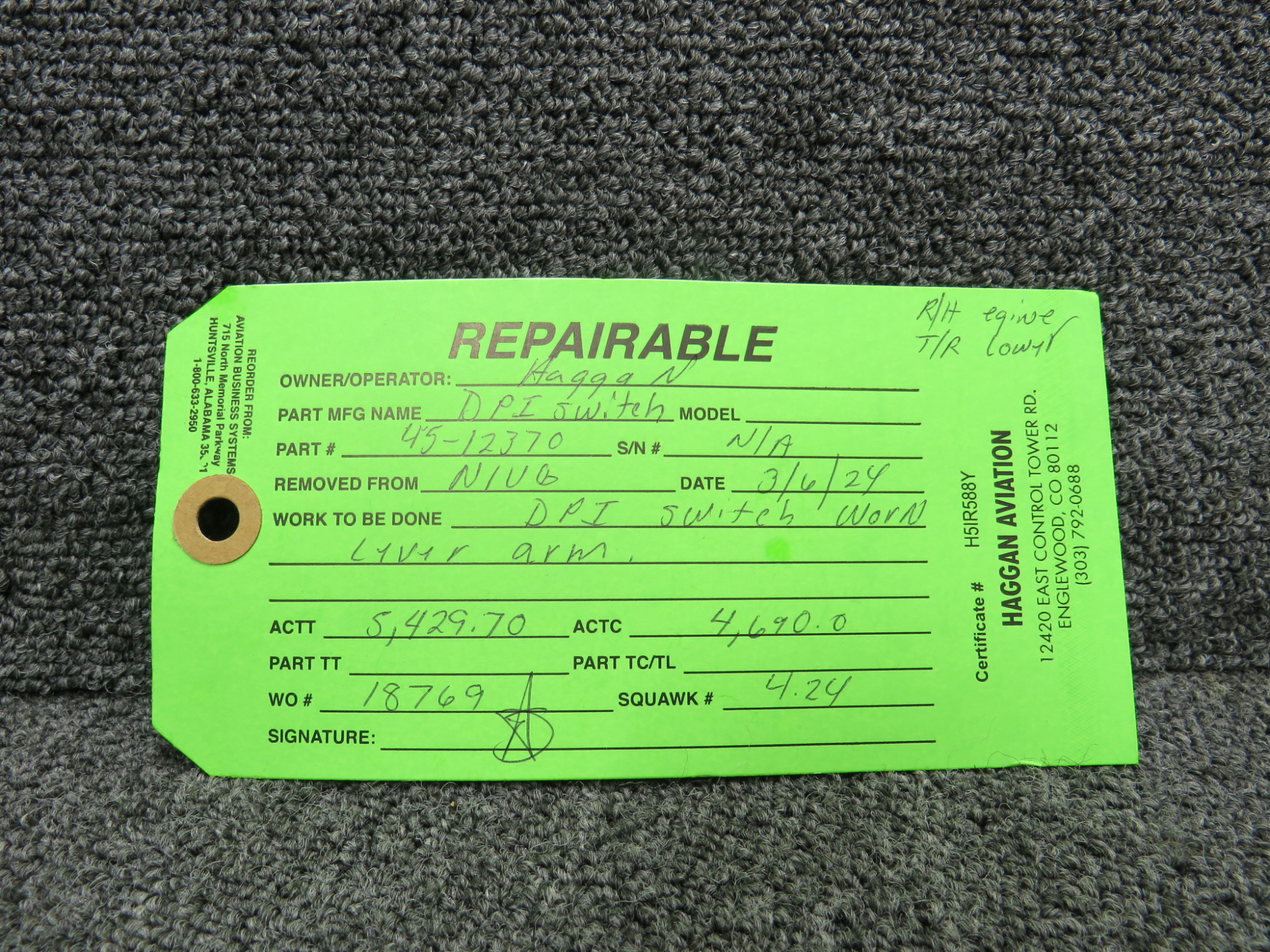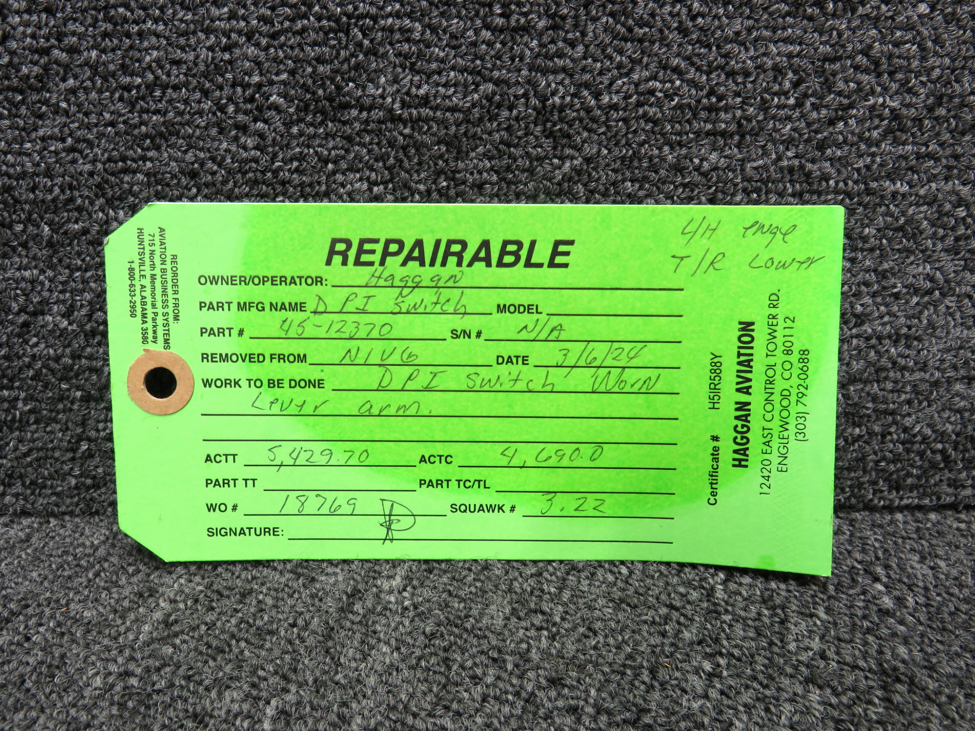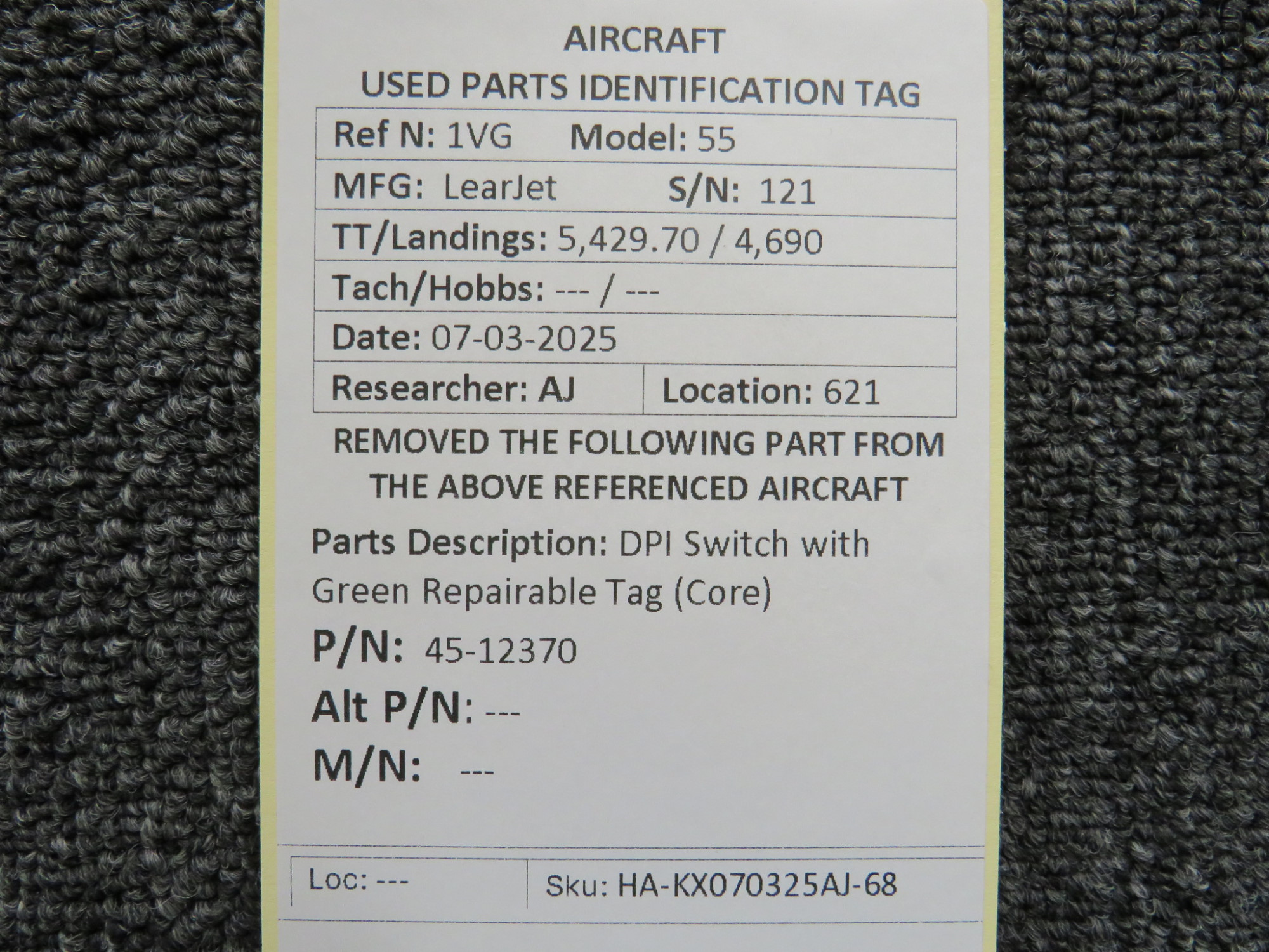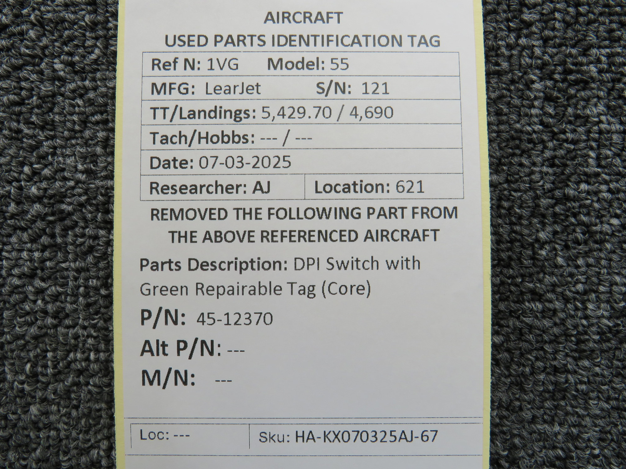 - Includes green repair tag