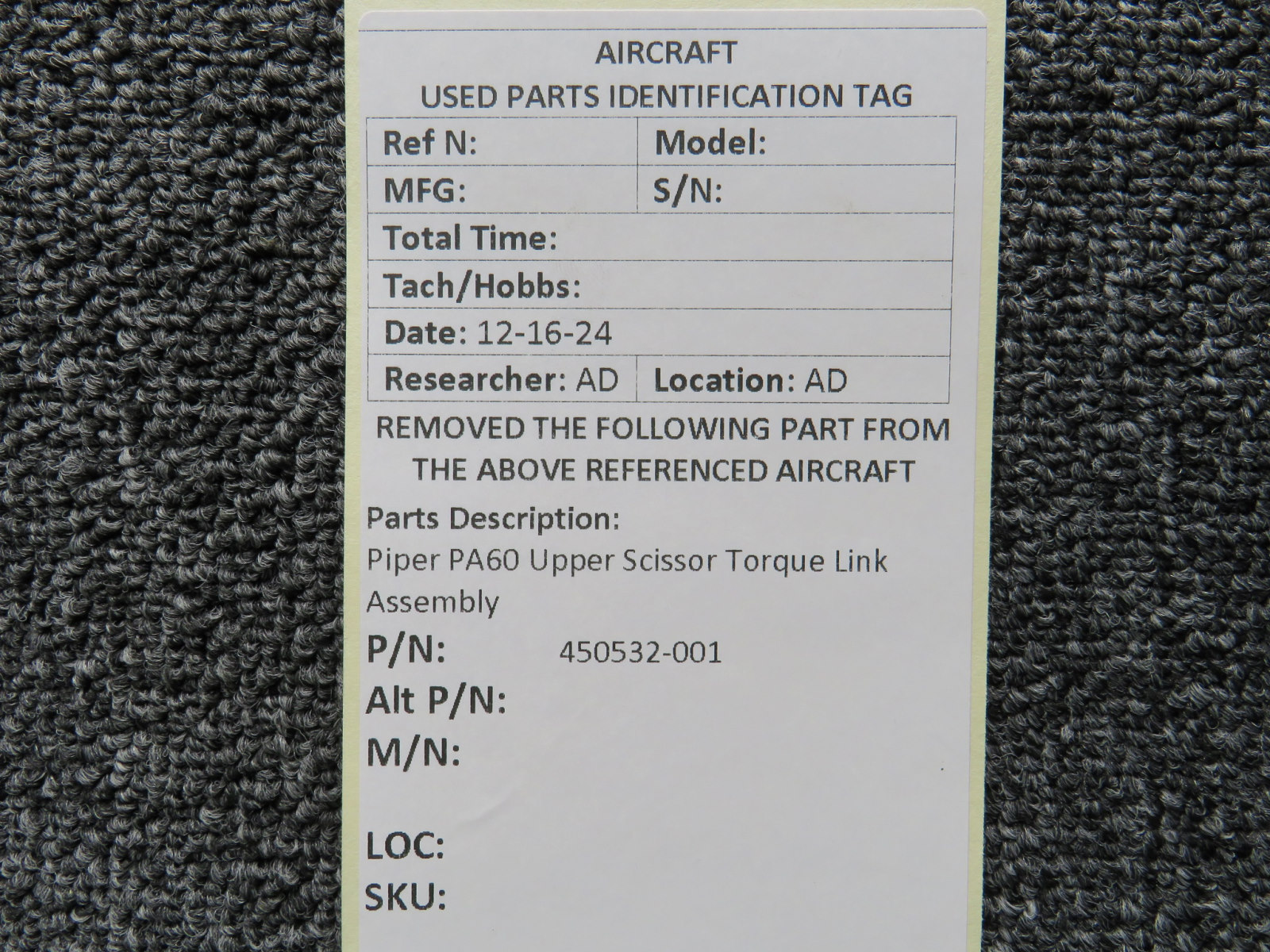 Attention International Buyers: We routinely export aircraft parts to destinations around the world. All import duties, taxes, and any other charges related to importing parts to your country are not included in the price of the item or shipping charges, these are 100% the responsibility of the buyer. Please check with your country's customs office to help determine what these additional costs will be prior to purchasing. We do not mark merchandise value below purchase value nor mark items as "gifts" as both U.S. and international law strictly prohibits this. We do not ship to forwarding shipping stations. A business or residential address is required for delivery.