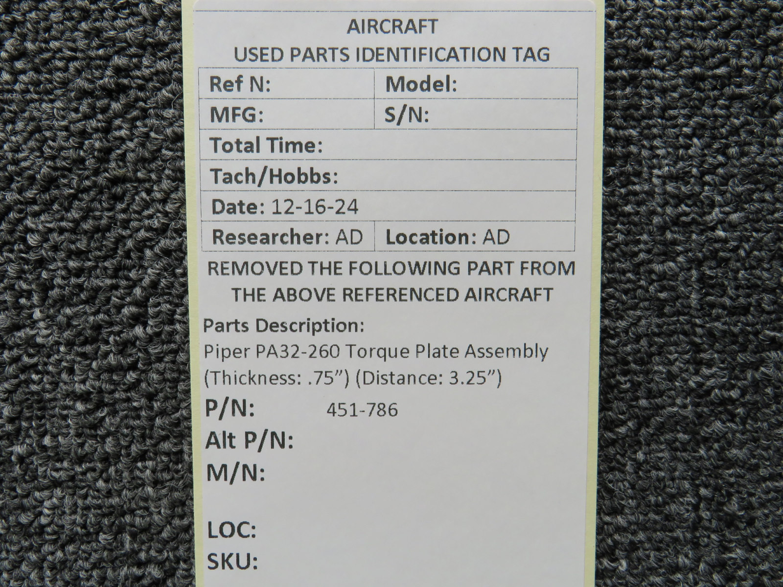 Attention International Buyers: We routinely export aircraft parts to destinations around the world. All import duties, taxes, and any other charges related to importing parts to your country are not included in the price of the item or shipping charges, these are 100% the responsibility of the buyer. Please check with your country's customs office to help determine what these additional costs will be prior to purchasing. We do not mark merchandise value below purchase value nor mark items as "gifts" as both U.S. and international law strictly prohibits this. We do not ship to forwarding shipping stations. A business or residential address is required for delivery.
