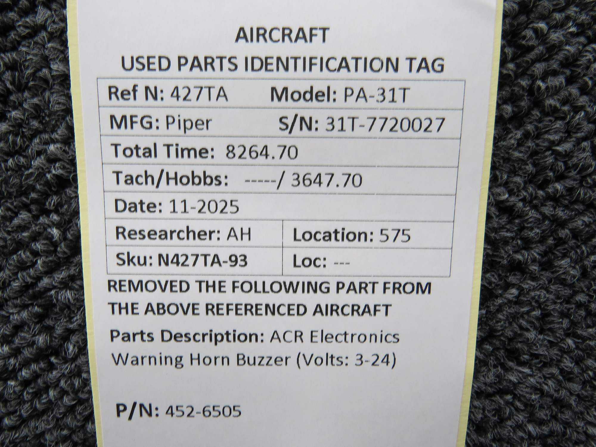 Unless specifically noted, most of our used airplane parts are sold in the condition they were removed, which means you should expect the usual signs of wear and tear.