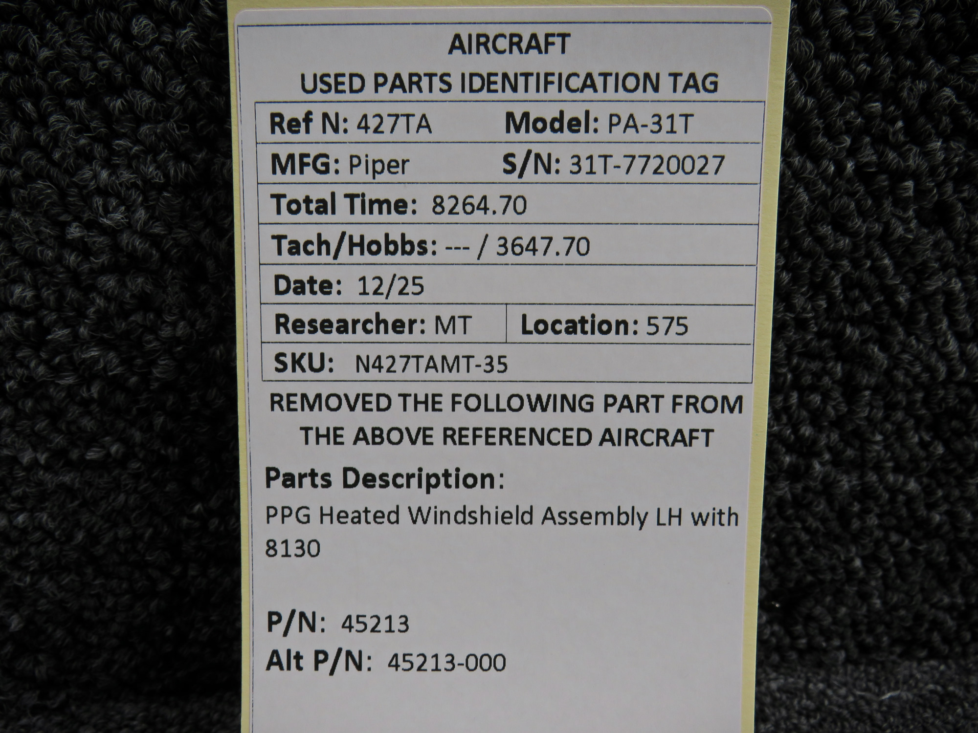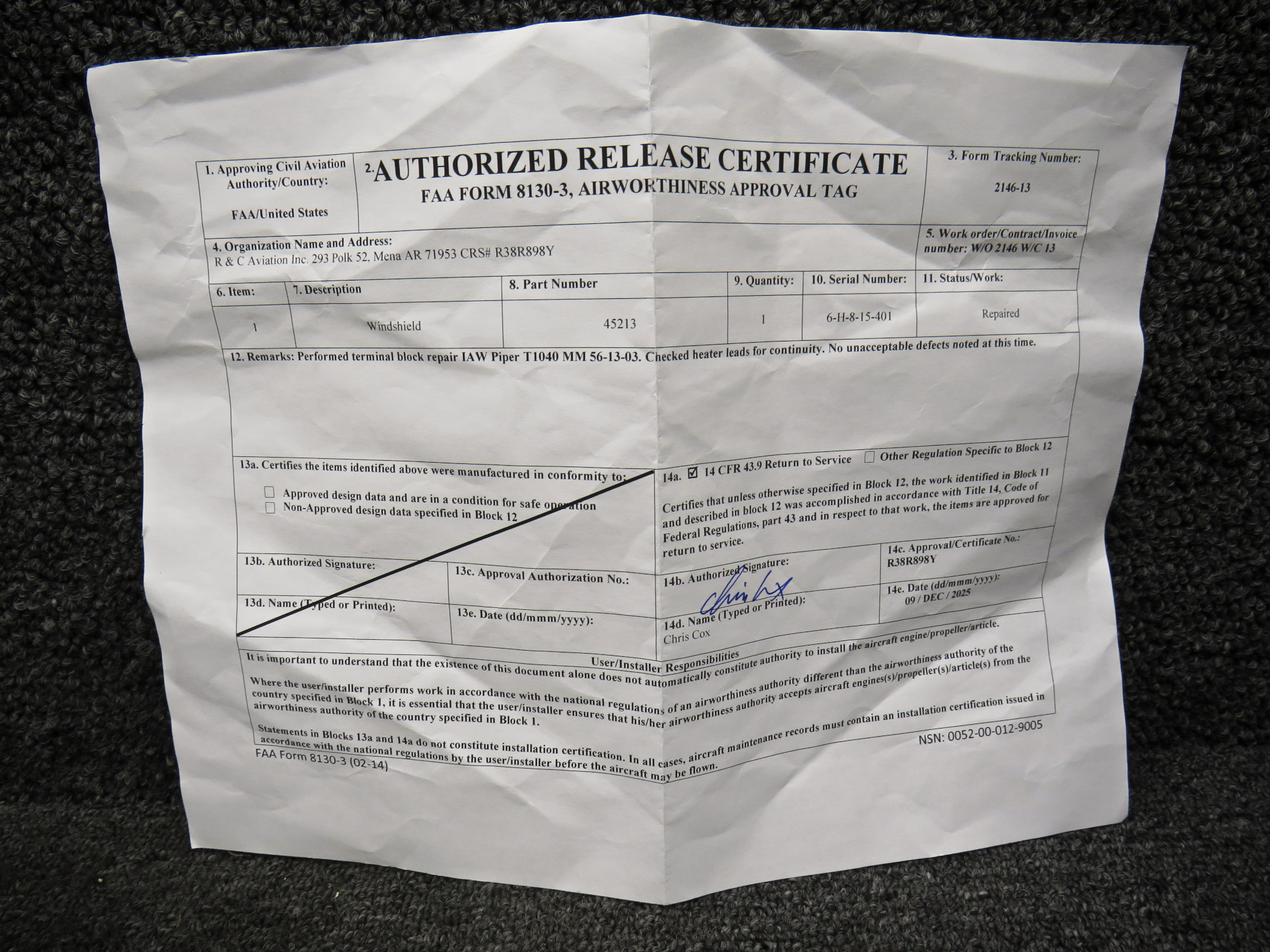 - Comes with 8130-3 from 12-9-2025 (repaired)