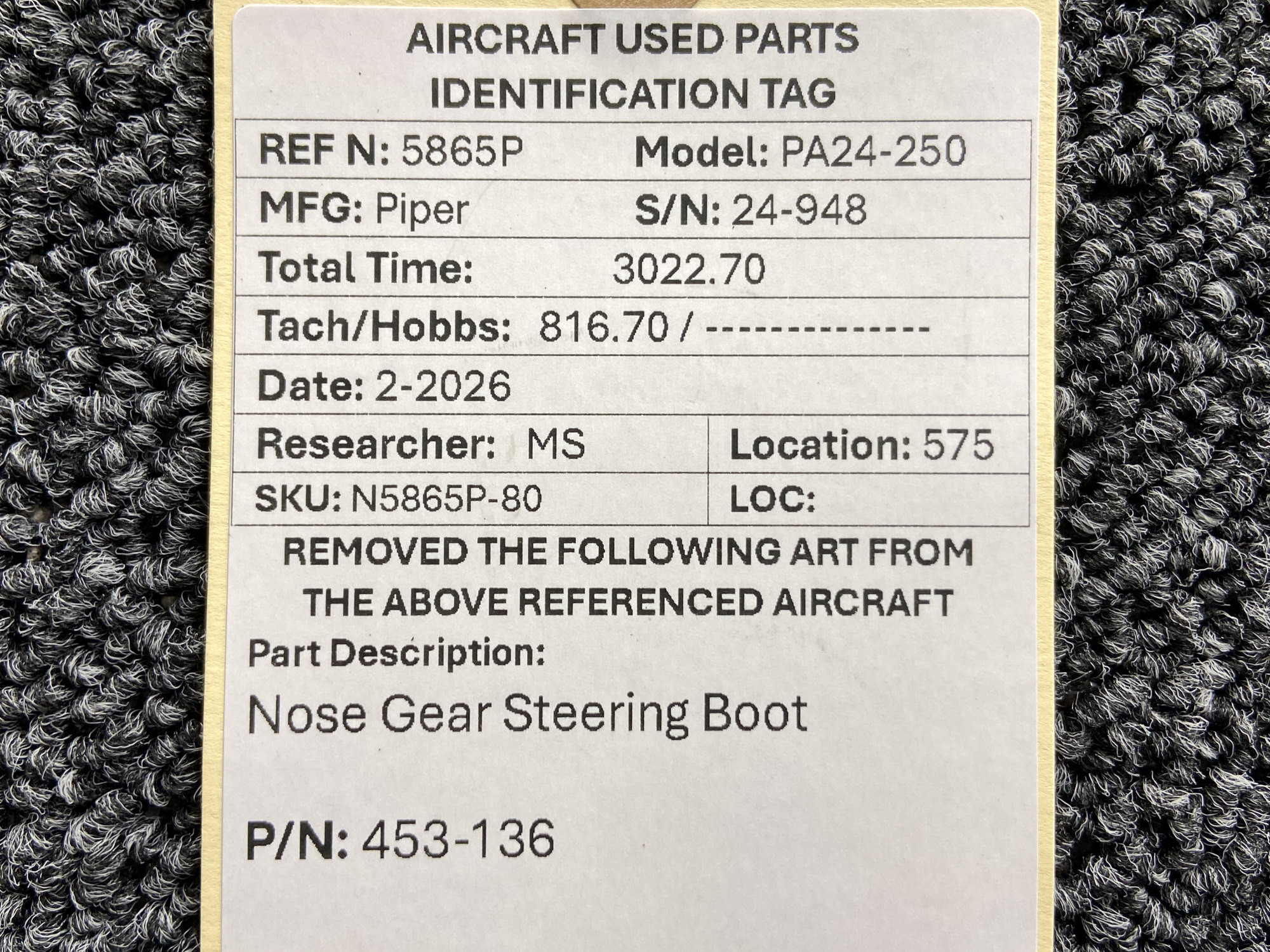 Unless specifically noted, most of our used airplane parts are sold in the condition they were removed, which means you should expect the usual signs of wear and tear.