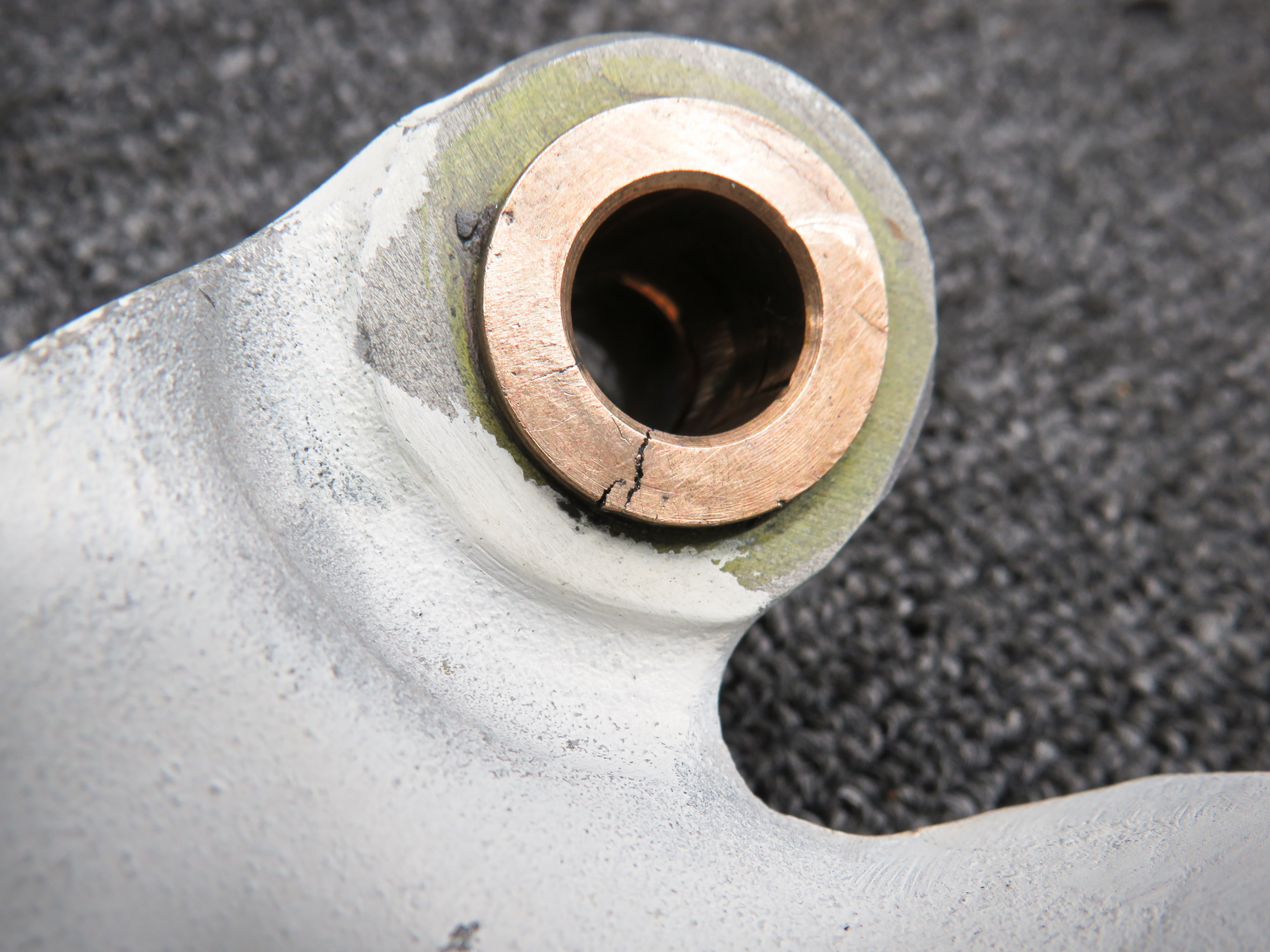 - Item has a cracked bushing and one hole is enlarged, see pictures for more detail