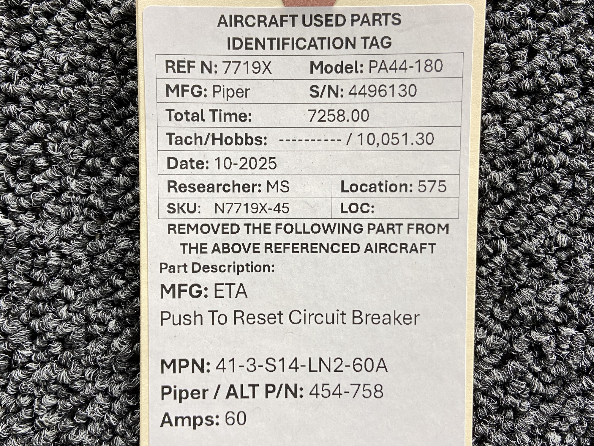 Unless specifically noted, most of our used airplane parts are sold in the condition they were removed, which means you should expect the usual signs of wear and tear.