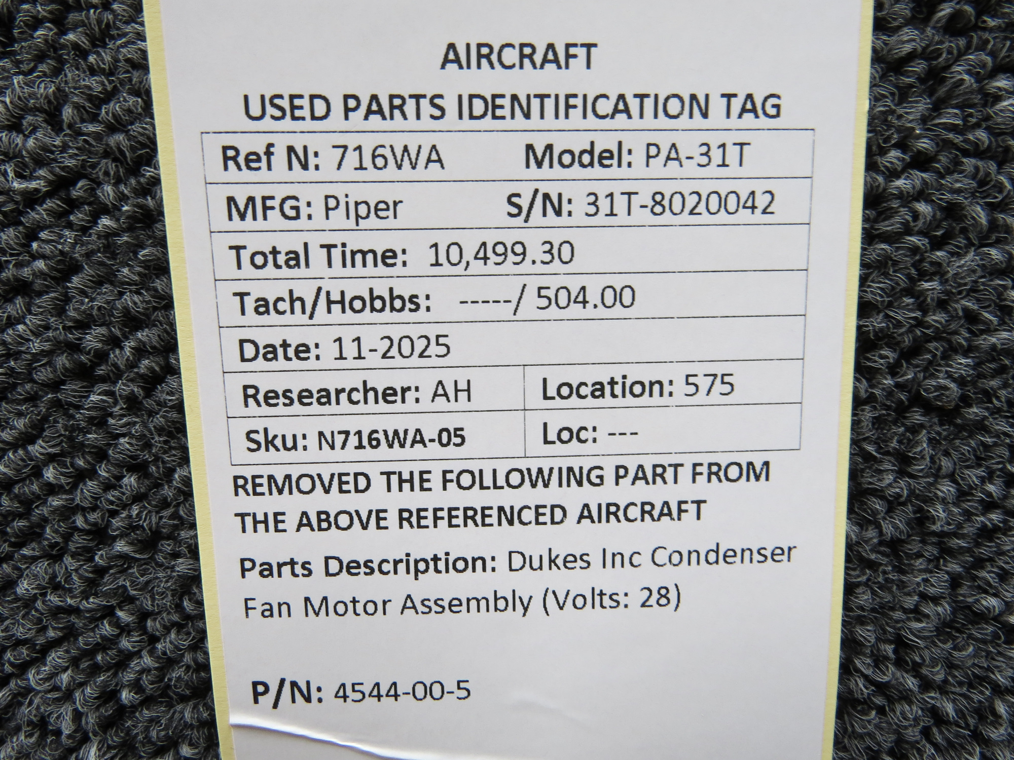 Unless specifically noted, most of our used airplane parts are sold in the condition they were removed, which means you should expect the usual signs of wear and tear.