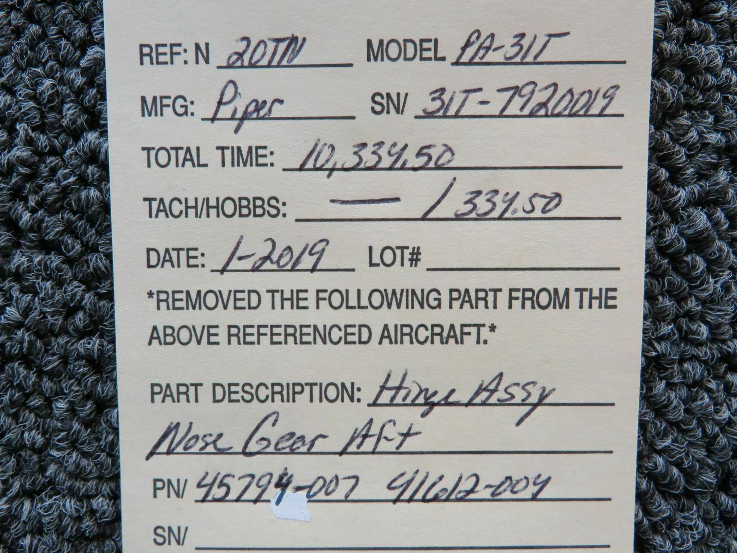 45794-007 / 41612-004 Piper PA-31T Hinge Assembly Nose Gear Aft