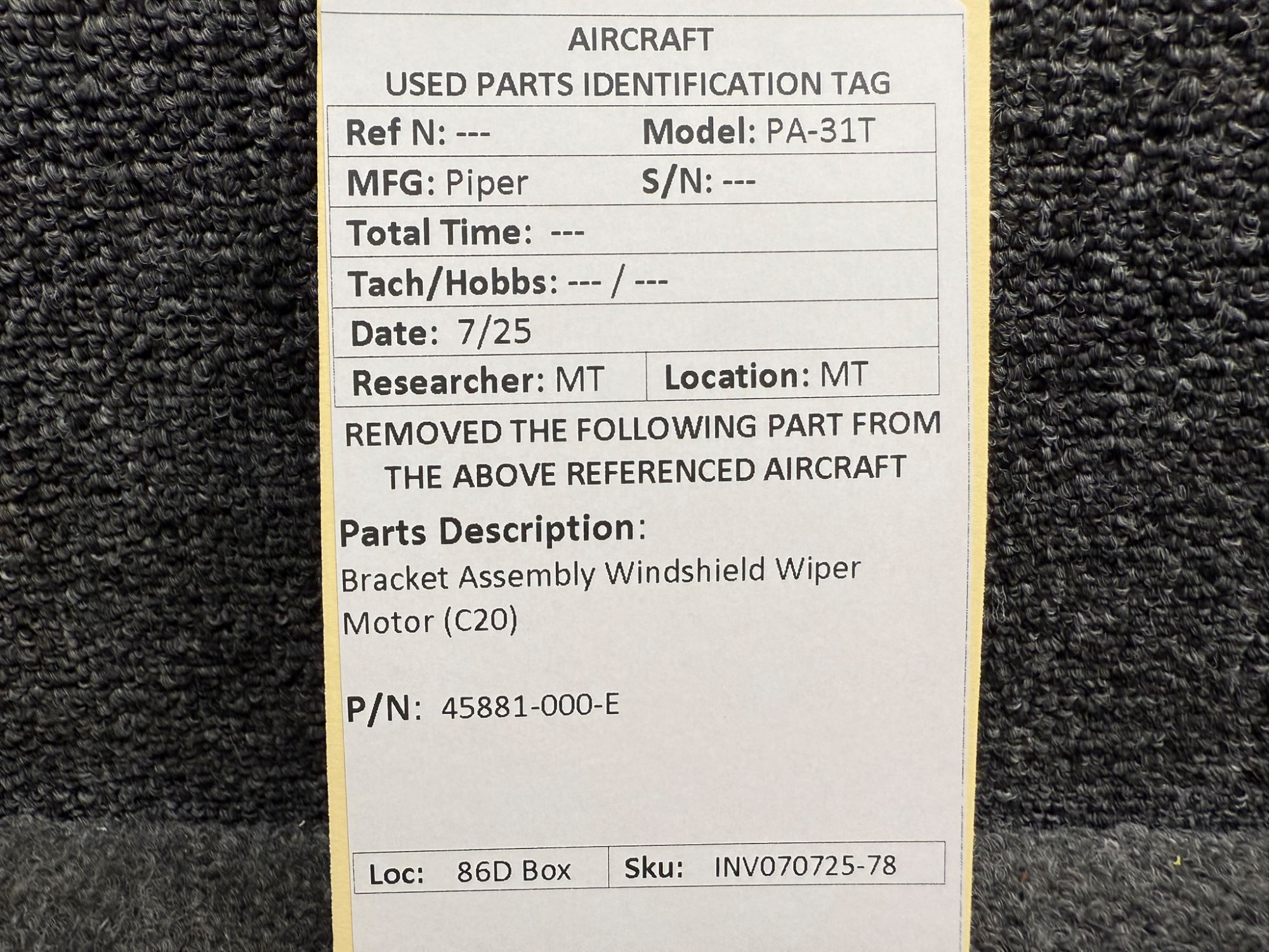 Unless specifically noted, most of our used airplane parts are sold in the condition they were removed, which means you should expect the usual signs of wear and tear.