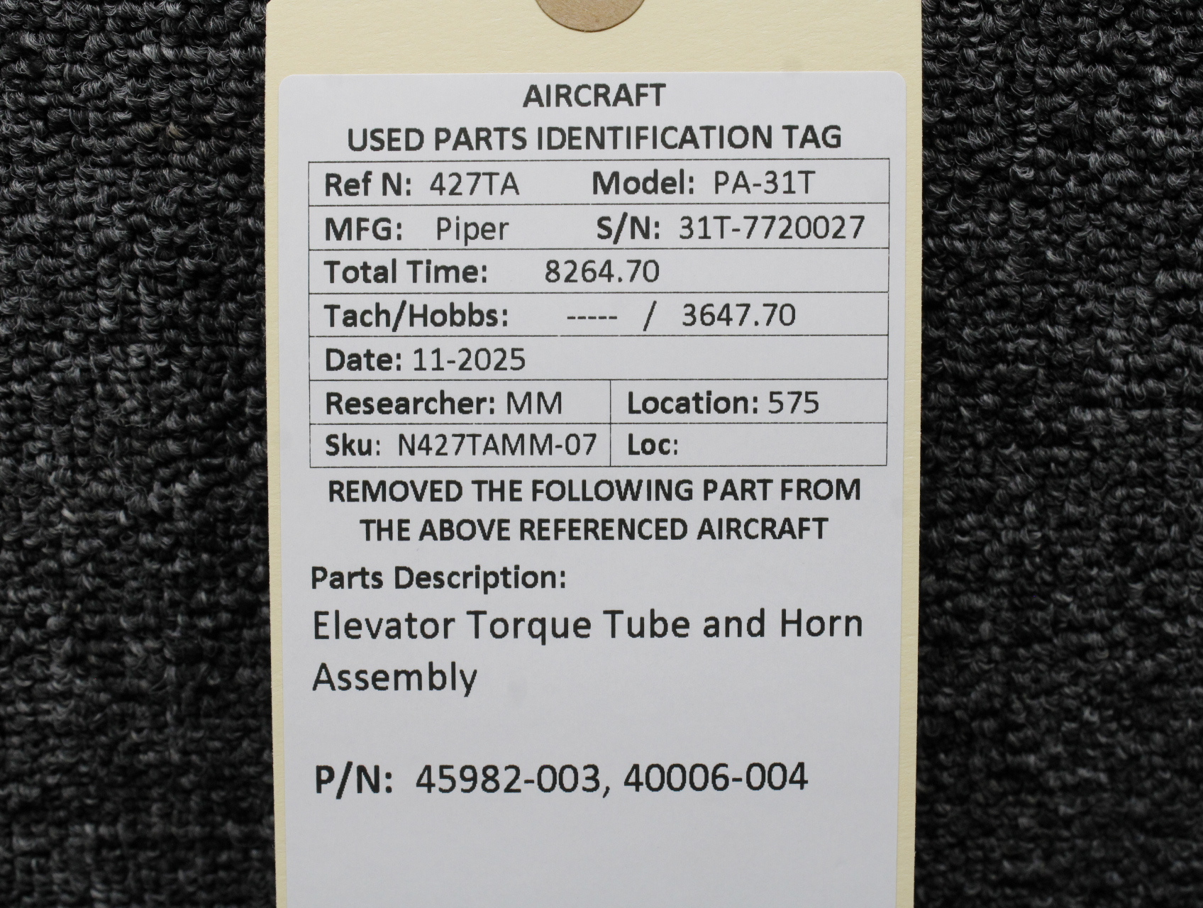 Unless specifically noted, most of our used airplane parts are sold in the condition they were removed, which means you should expect the usual signs of wear and tear.