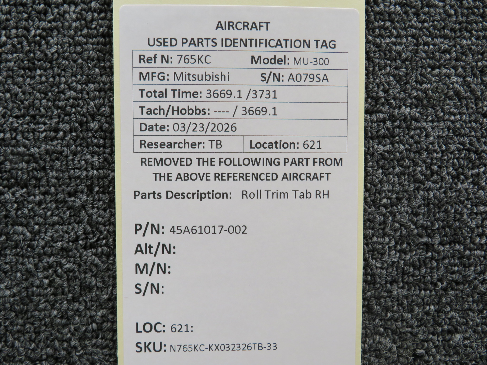 Every part is carefully inspected throughout our process and several times before it goes online. Most items are sold as-removed, just as they came off the aircraft. These parts are not functionally tested. What we do provide is clear photos, full traceability when available, pricing that reflects the as-removed condition, and a no-nonsense 90-day return window.