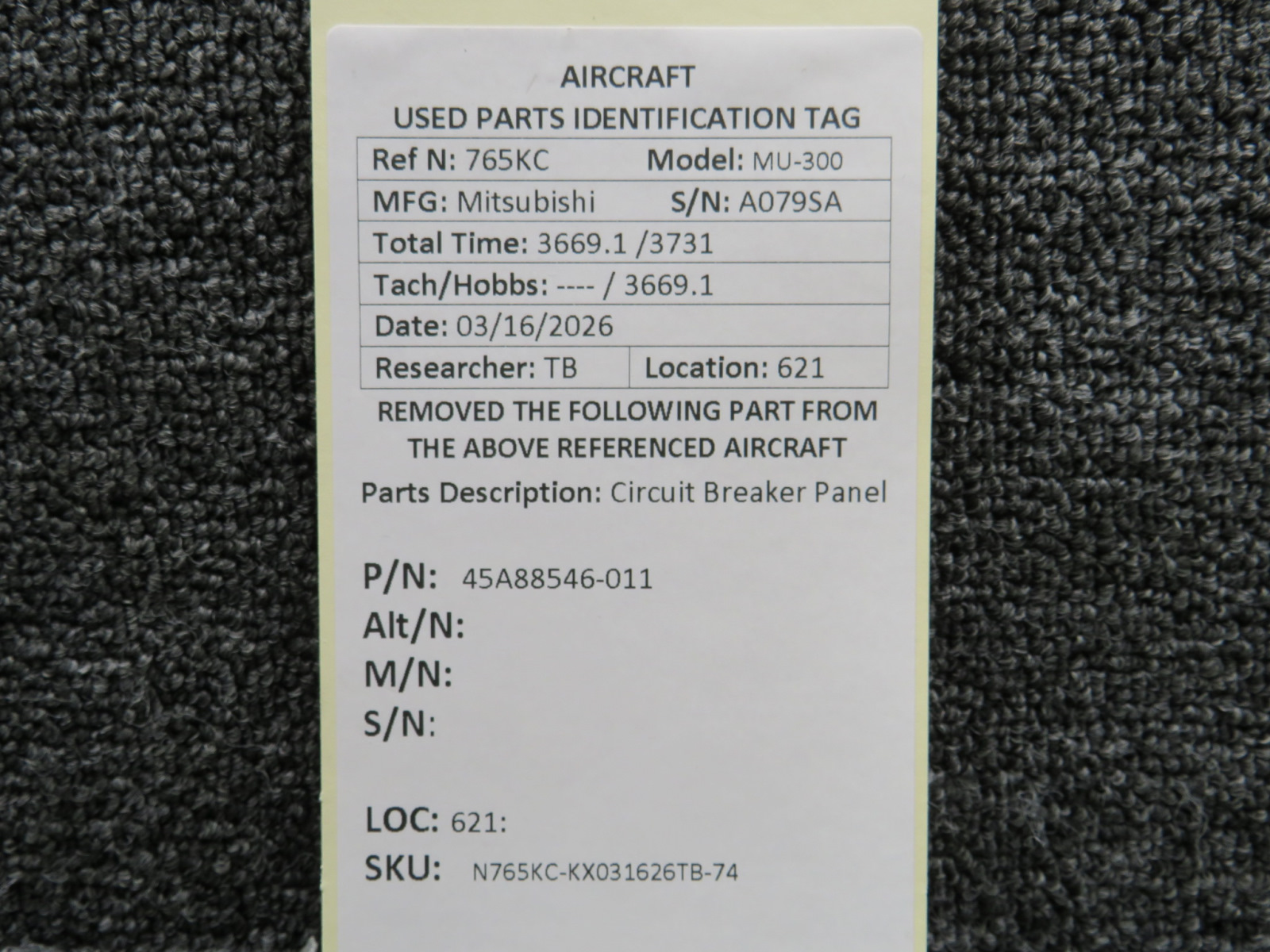 Every part is carefully inspected throughout our process and several times before it goes online. Most items are sold as-removed, just as they came off the aircraft. These parts are not functionally tested. What we do provide is clear photos, full traceability when available, pricing that reflects the as-removed condition, and a no-nonsense 90-day return window.