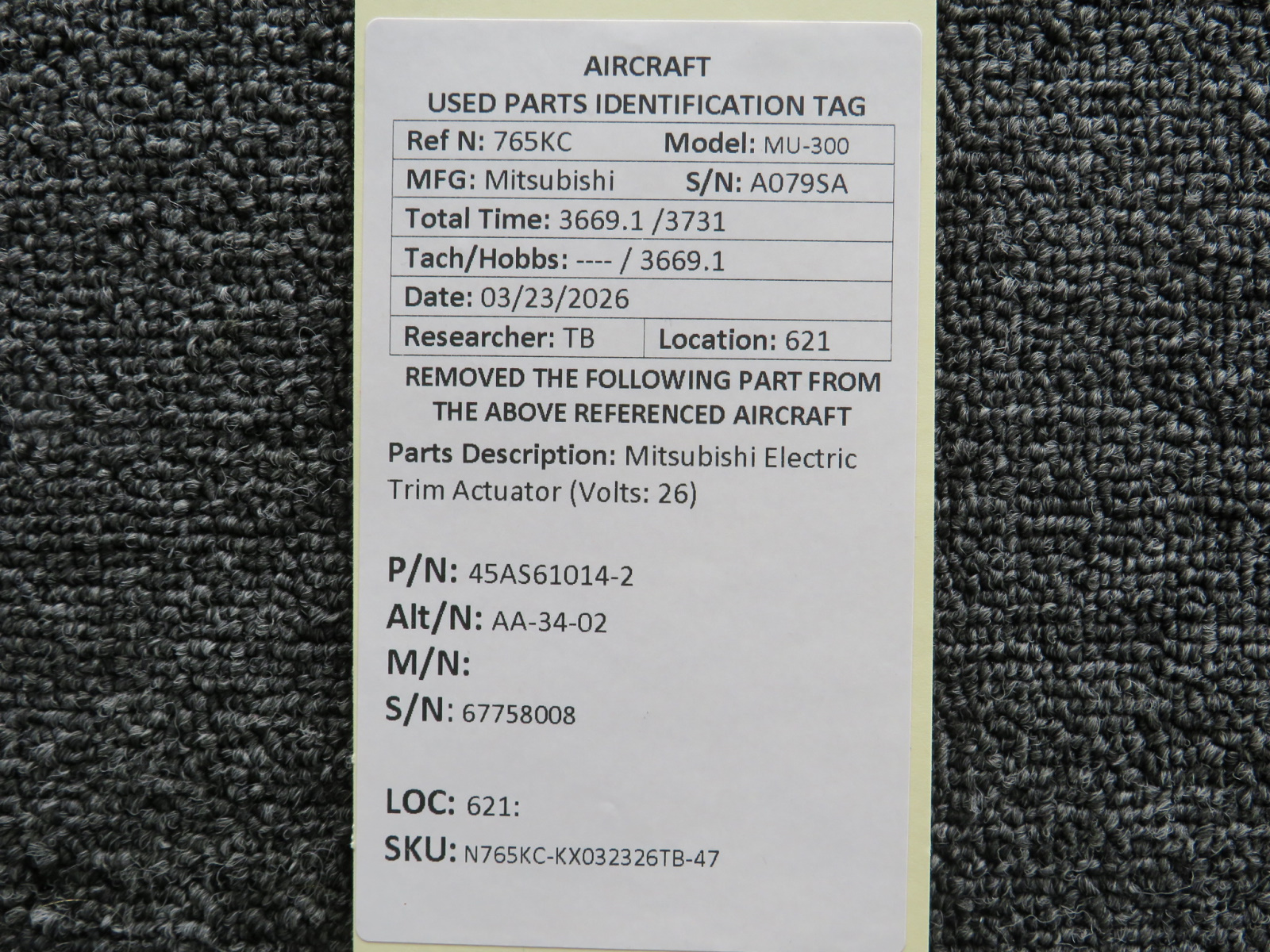 Every part is carefully inspected throughout our process and several times before it goes online. Most items are sold as-removed, just as they came off the aircraft. These parts are not functionally tested. What we do provide is clear photos, full traceability when available, pricing that reflects the as-removed condition, and a no-nonsense 90-day return window.