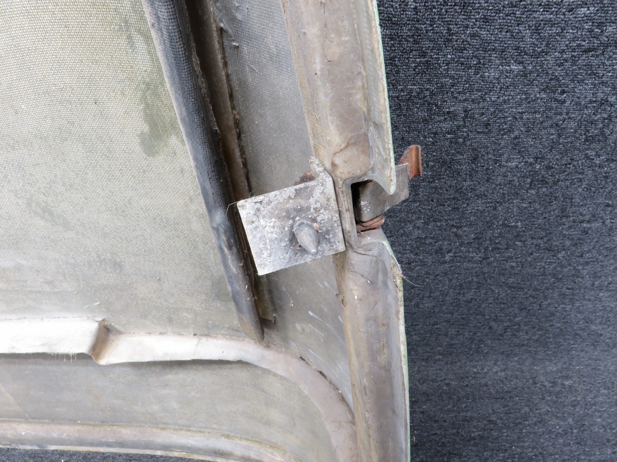 - Surface corrosion on hinge mounts